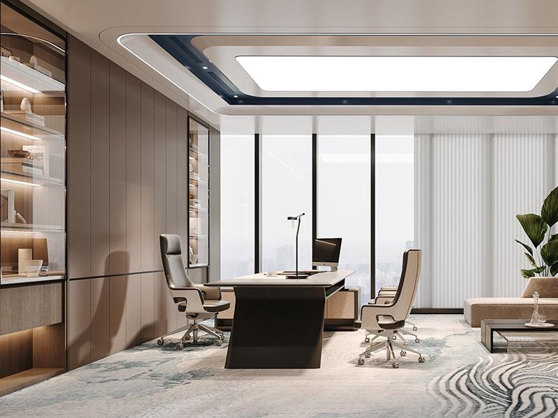 这组由壹西格玛打造的现代商务办公空间,以 “简约高效、质感高级” 为核心,构建了一套完整的企业办公场景,从庄重大气的会议室到沉稳雅致的总经理办公室,再到通透协作的开放办公区,每一处空间都兼顾了商务形象与实用功能。