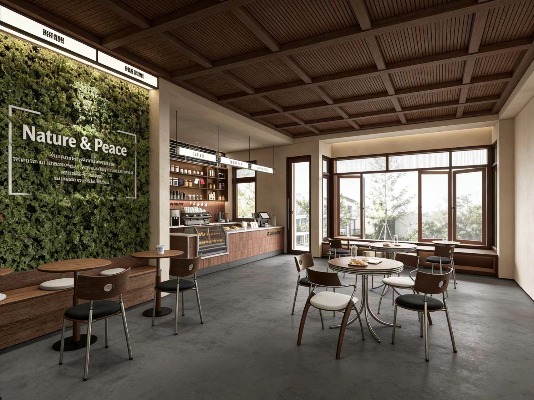本案是位于成都的一家精品咖啡馆公装设计项目,我们以「自然与平和」为核心设计理念,为业主打造了一个兼具美学质感与社交属性的沉浸式咖啡空间,让都市人在忙碌生活中,拥有一处可以慢下来、享受咖啡与时光的治愈角落。