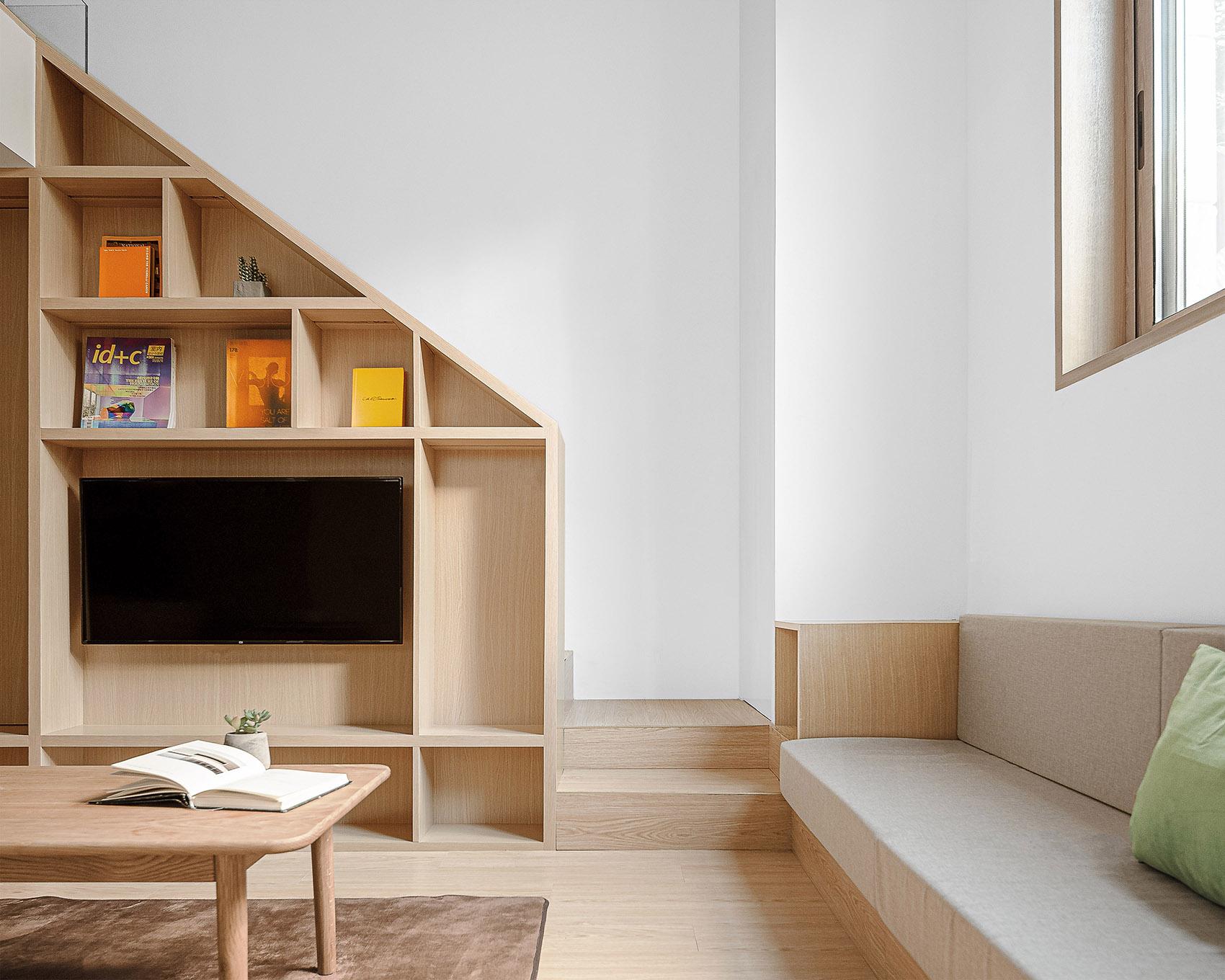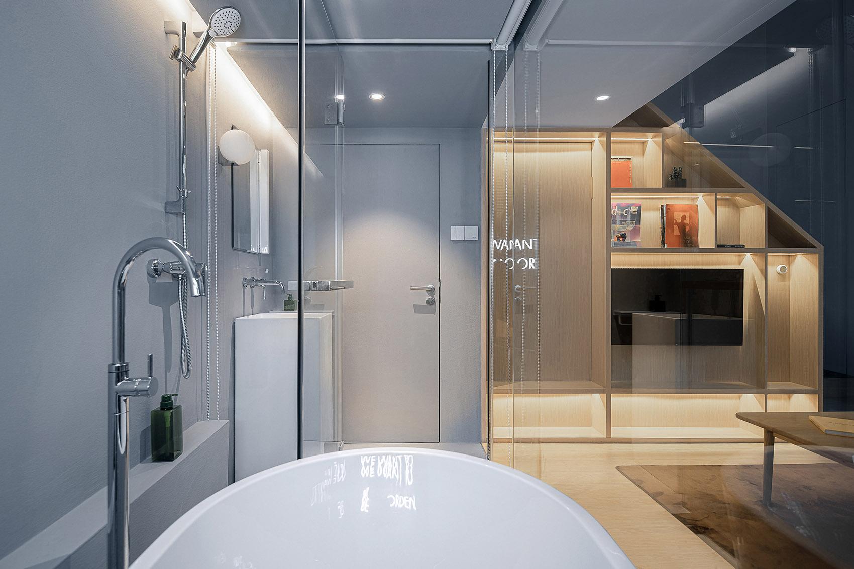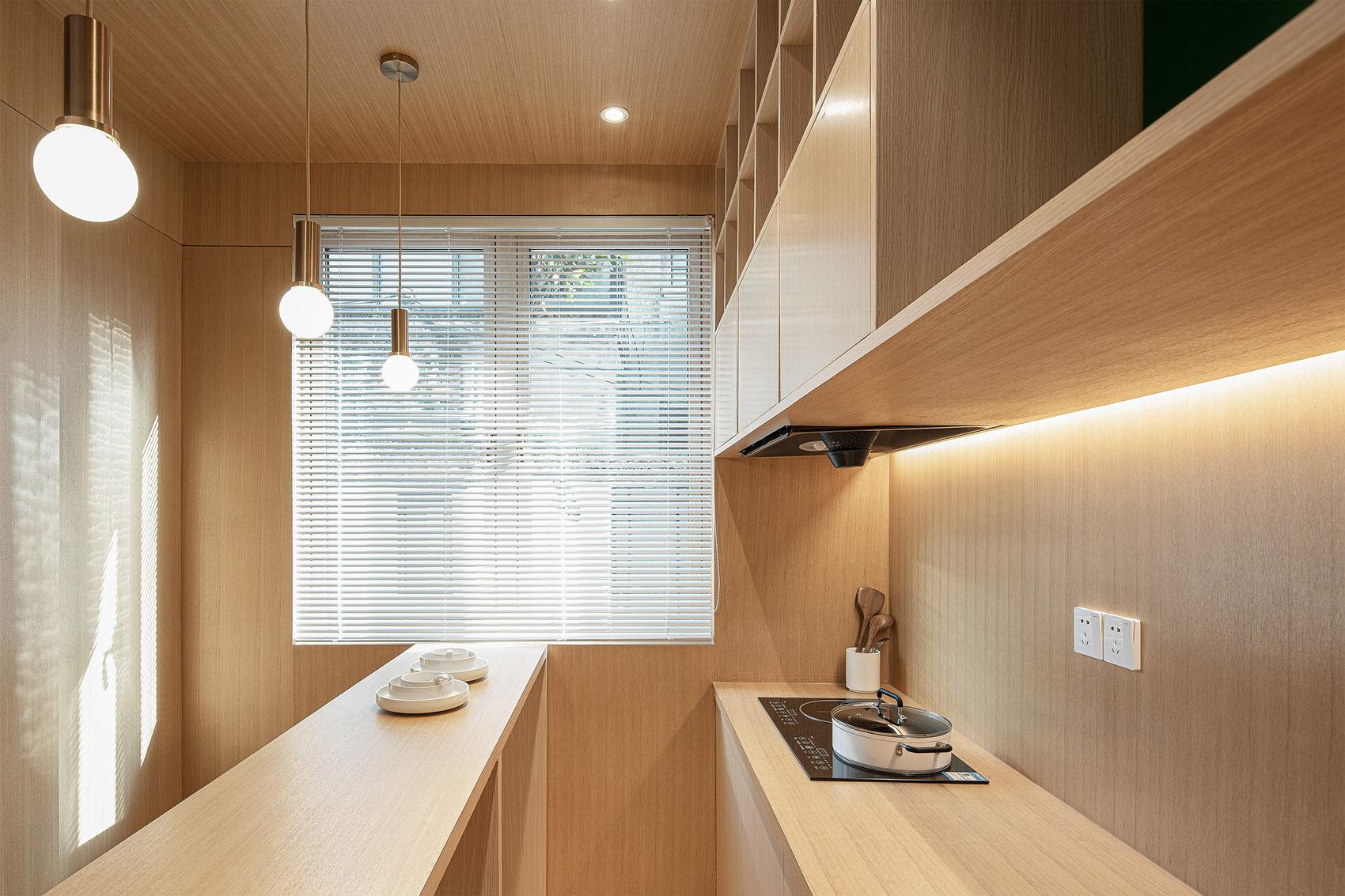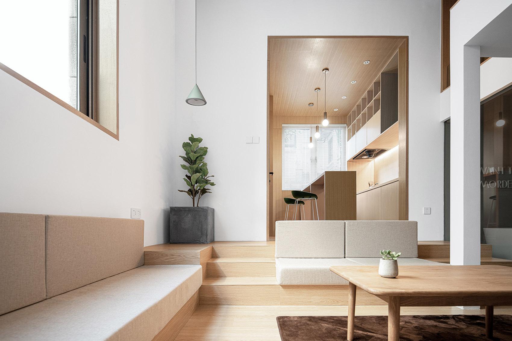 空间利用上,采用了 loft 结构,这是工装设计中优化垂直空间的巧妙手法。睡眠区被设置在二层,既充分利用了空间,又营造出独特的居住体验。为保障安全,同时不破坏空间的通透感,选用了玻璃护栏。玻璃的通透特性,让二层与一层视觉上相互连通,光线能自由穿梭,使整个空间更显开阔,仿佛与龙泉山的山野景致融为一体,旅客在睡眠区也能隐约感受到山下的生机与活力。一层则紧凑且合理地规划了客厅、厨房、卫浴等功能区,各区域既相对独立,又通过开放式的布局形成有机整体,方便旅客在不同功能区之间活动,契合民宿作为临时 “家” 的属性。