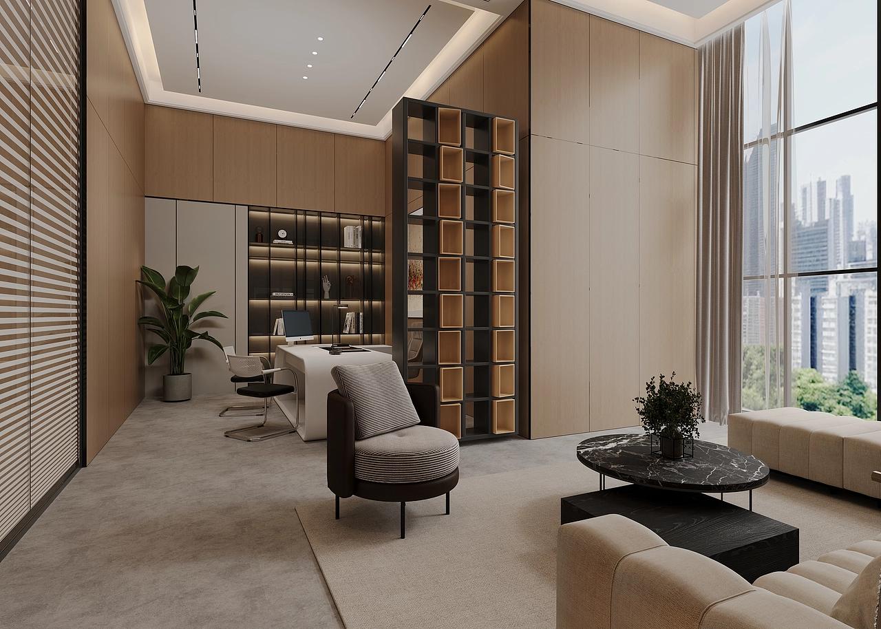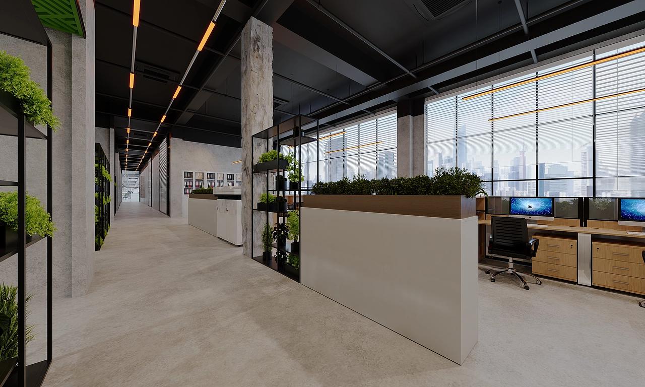 灯光设计同样精心雕琢,嵌入式灯提供了基础且均匀的照明,确保办公区域光线充足;线性灯则勾勒出空间的轮廓,营造出富有层次的光影效果,增强了空间的现代感与设计感。大窗户引入的充足自然光,让整个办公空间更加开阔、明亮,员工在这样的环境中工作,视觉疲劳得到缓解,工作效率与办公体验也能得到有效提升。