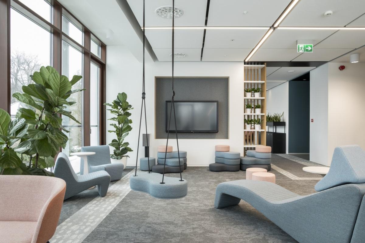 办公室的灵感中心,你会发现由两个设计的管理办公室。大会议室用于头脑风暴、临时协商和小团队工作的房间。房间的名称与室内设计相对应,在每个情况下都参考了特定的生态系统。为非正式会议设计的休闲区主要配备了软座椅,每个人都可以为自己挑选一个舒适的地方:沙发、坐垫、躺椅或秋千。