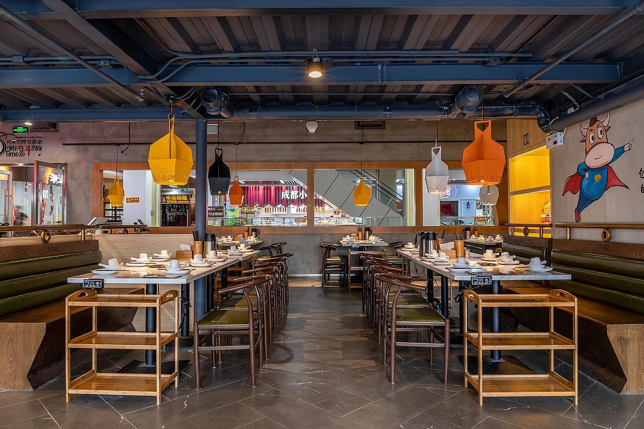 整体而言,成都成华区这家 460 平的潮汕牛排火锅店,以工业风为基底,通过色彩、软装、品牌元素的多维注入,是 “工业风 + 餐饮品牌化” 工装设计的典型落地案例,为同类餐饮空间的工装设计提供了可借鉴的范本。