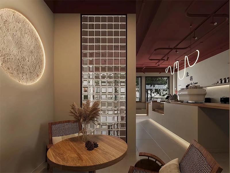 玻璃材质的运用是空间的点睛之笔,透明玻璃砖隔断在划分客座区与操作区时,既保证了空间的私密性,又让光线自由穿透,维持了 80 平米小空间的通透感;大面积落地窗则打破了室内外的界限,让街道的烟火气与室内的咖啡香自然交融,也最大化利用了自然光,减少了人工照明的依赖。