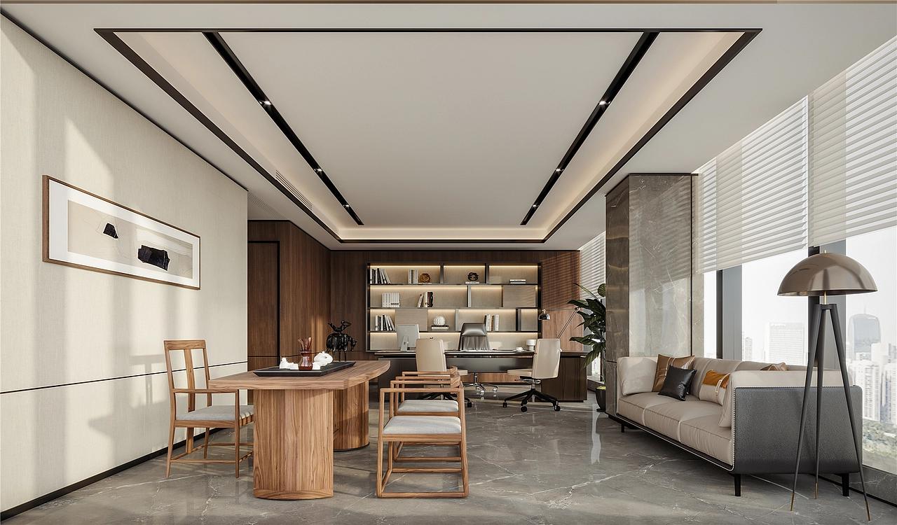 灯光设计采用无主灯 + 层次照明的组合:基础照明以嵌入式筒灯 + 线性灯带为主,均匀柔和的光线覆盖整个 850 平空间,避免工装常见的 “强光刺眼” 问题;会议室用射灯聚焦屏幕区域,保证会议效率;董事长办公室的落地灯、茶水间的内嵌灯带,则分别营造 “松弛洽谈” 与 “温馨茶歇” 的氛围,让不同功能区的灯光既实用又具情绪价值。