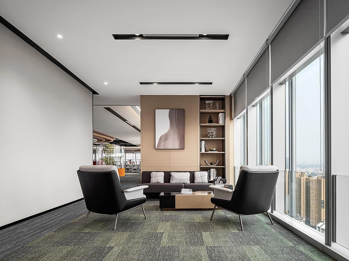 整体而言,这套成都市锦江区时代广场的证券公司办公室设计,以 “简约高级 + 自然融入 + 功能适配” 的思路,既满足了证券行业的专业属性,又以人性化的细节提升了办公体验,成为商务核心区中兼具 “专业度” 与 “舒适度” 的工装范本。