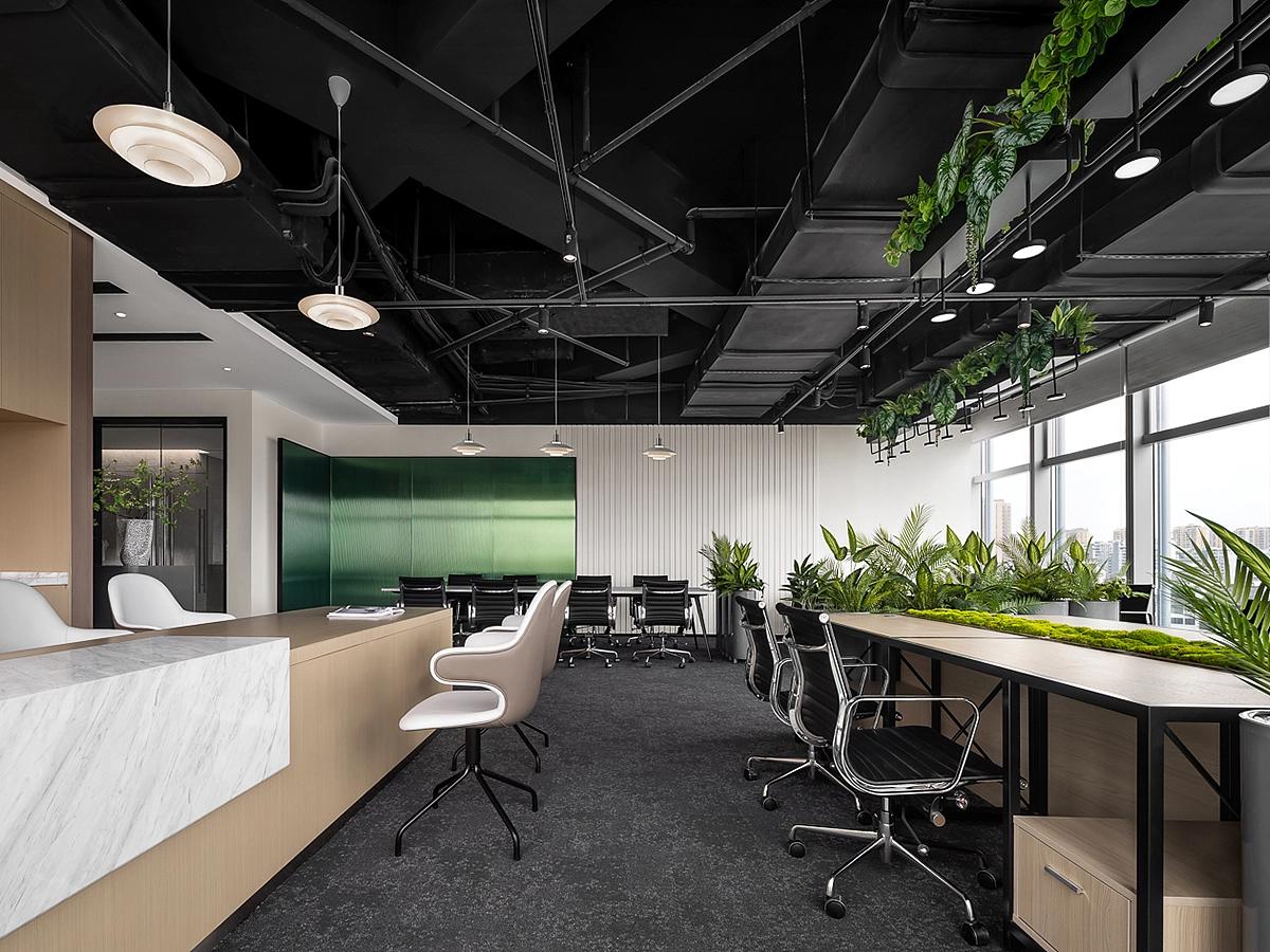 | 案例简介 | 在成都市锦江区时代广场这一城市商务核心区,1500 平的证券公司办公室以 “现代简约 + 自然生态” 的工装设计逻辑,完成了专业金融空间与舒适办公体验的融合 —— 既匹配证券行业的严谨专业属性,又以自然元素消解高压工作的紧绷感,构建出高效与松弛并存的办公场域。 |