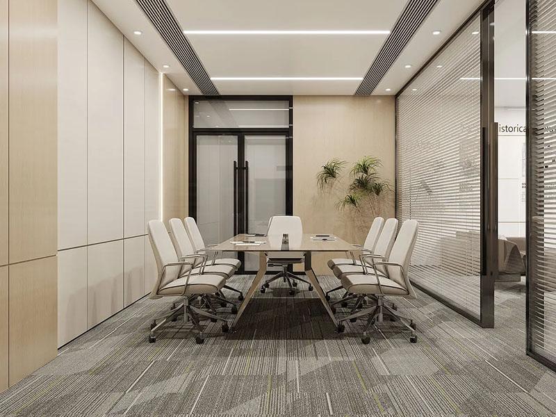 壹西格玛为办公空间量身打造的多元区域,精准匹配各类办公需求。小型会议室以浅木色与灰色为主色调,百叶窗的设计兼顾采光与隐私,简约会议桌搭配人体工学椅,再辅以右侧收纳储物柜,用干练的布局承载日常小型研讨;中型会议室延续浅色系基调,木饰面与玻璃隔断的组合增强空间通透感,线性灯提升高级质感,恰到好处的绿植点缀则弱化了办公场景的严肃感,适配部门级会议与商务接待等多元需求。