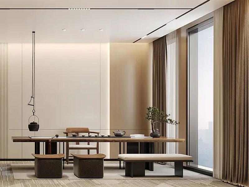 除核心办公区域外,壹西格玛更关注空间的人文关怀,精心设计茶室洽谈区与休闲区。茶室融入东方禅意元素,原木茶桌搭配简约茶具,辅以雅致盆景,暖色调墙面与双层窗帘共同营造出静谧氛围,成为商务洽谈与身心放松的理想场所;休闲区则选用浅棕皮质沙发,搭配艺术挂画与绿植装饰,彻底弱化办公的紧张感,为员工提供短暂休憩与非正式交流的温馨角落。