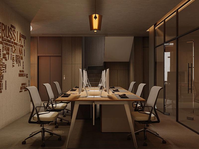 在现代办公空间的设计语境中,壹西格玛凭借对“简约高级+温暖质感”的精准把控,打造出兼具功能性与美学价值的办公场景,让每一处空间都成为工作与舒适的平衡点。走进壹西格玛设计的办公区域,首先映入眼帘的是带玻璃隔断的私密办公室,微水泥墙面搭配木色家具,自带沉稳静谧的氛围,内嵌灯带的置物架不仅提升了空间的通透感,更增添了细节处的精致,角落的休闲沙发则为短暂放松预留了温馨角落,让私密办公不再沉闷。相邻的开放办公区延续了简约基调,长桌布局适配多人协作需求,墙面点缀的国家名称装饰为空间注入鲜活气息,木质与金属材质的碰撞,再辅以局部灯光的烘托,既保证了办公的高效实用,又营造出富有质感的协作氛围。