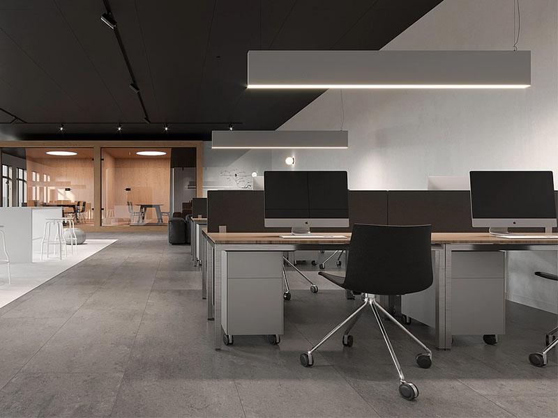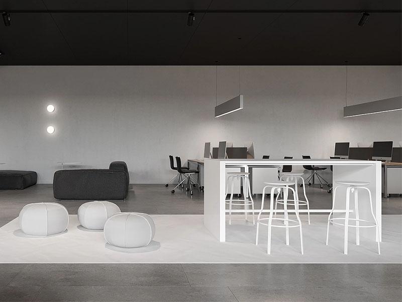 细节之处更见匠心,壹西格玛对空间细节的把控细致入微。长条形吊灯与球形灯的巧妙搭配,不仅满足了办公空间的照明需求,更成为空间中的视觉亮点,为简约的空间增添了设计感;带轮办公椅与利落线条的家具选择,既提升了使用的便捷性,又契合了极简的设计风格,让整个空间在视觉上更加整洁统一。