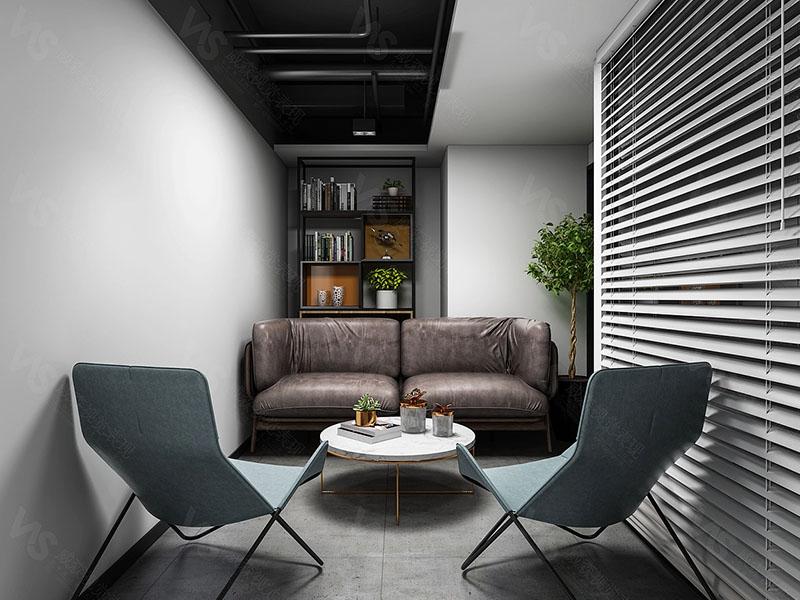 休闲洽谈区则是壹西格玛展现人文关怀的重要载体,深棕沙发与灰蓝单人椅的组合温馨舒适,小圆桌与书架的搭配让空间兼具功能性与休闲感,百叶窗的设计保证了隐私性,让员工在忙碌工作之余能在此放松身心,也为商务洽谈提供了轻松愉悦的氛围。