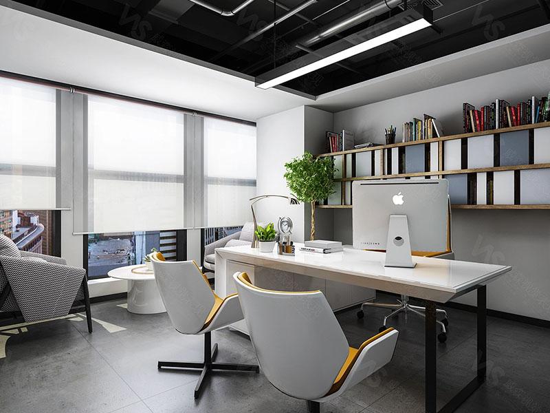 壹西格玛在设计中以黑白灰为主色调奠定沉稳基调,同时巧用局部亮色点缀,让空间既不失专业质感,又充满灵动活力。独立办公区域内,浅色桌椅搭配橙色或黄色装饰元素,与深色背景形成鲜明对比,大窗户搭配百叶窗的设计,既保证了充足采光,又能灵活调节光线,营造舒适的办公氛围。同时,区域内合理配置书架与沙发,让独立办公与小型洽谈功能完美融合,满足多元办公需求。