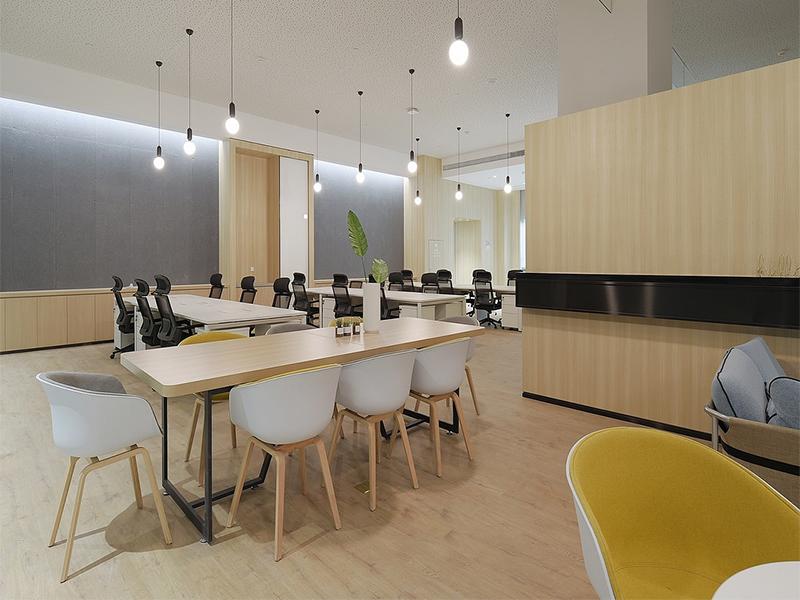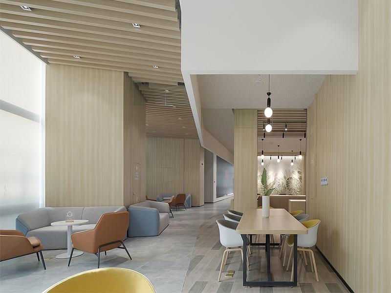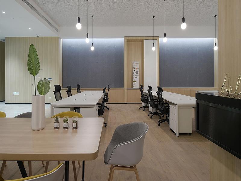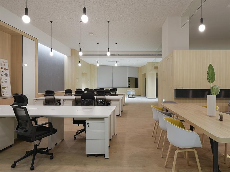 新媒体行业的核心是 “人” 的创造力,而空间的质感直接影响情绪与效率。这处办公室以浅木色饰面板为基底 —— 墙面、柜体均采用温润的原木纹理,搭配同色系的浅色木纹地板,一踏入便消解了传统办公空间的生硬感。浅木色自带的 “呼吸感”,恰好适配新媒体从业者长时间伏案的工作节奏,让视觉与心理都能保持松弛。