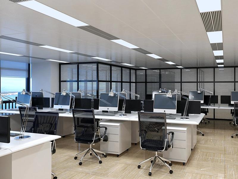 走进壹西格玛的开放办公区,浅木色地砖与白色柜体率先铺就了清爽的基底,长条办公桌沿纵深排列,搭配透气的网格办公椅,既保证了工位的密集度,又不会让空间显得逼仄。玻璃隔断与百叶窗的组合是设计里的巧思:通透的玻璃让自然光可以毫无阻碍地漫入,百叶则随手就能调节隐私,恰好适配团队协作与独立办公的双重需求。顶部嵌入式长形灯具连成线,与天花板的格栅线条呼应,既强化了空间的纵深感,也让整个区域始终保持明亮利落的氛围,即便是多人同时办公,也不会有压抑感。