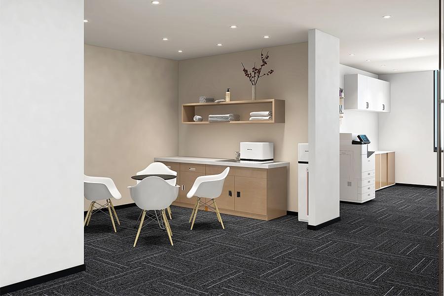 开放场域是头脑风暴的协作阵地,线性排布的工位让信息流转更顺畅,这是壹西格玛针对现代办公协作需求的精准布局;自然衔接的休闲区里,柔调沙发与简约桌台的组合,让临时洽谈或短暂休憩都有了松弛的载体;茶水间的轻简布置更藏着日常暖意 —— 白调座椅围合小巧桌台,置物架上的细节陈设,让冲一杯咖啡的间隙都浸着妥帖的舒适,这些生活化的设计,是壹西格玛在成华区项目里,对 “办公即生活” 的细腻回应。