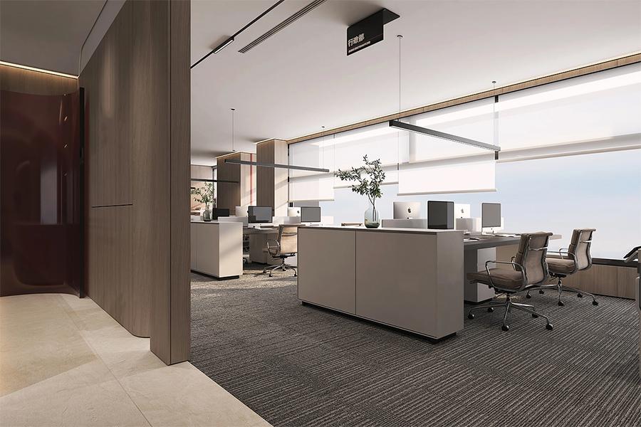 开放办公区作为空间核心场域,承载着团队日常协作与专注办公的双重需求。自然光借由全景落地窗充分倾洒而入,与悬浮式线性灯带交织叠加,在地面与桌面晕开柔和均匀的光晕,有效缓解长时间办公的视觉疲劳;模块化办公位严格遵循人体工学设计,宽幅台面足以容纳电脑、文件等各类办公设备,隐藏式抽屉与侧方收纳柜精准消解杂物堆积,让桌面始终保持整洁有序。办公位间距经过科学测算,既保障员工专注办公的沉浸感,又预留出便捷的协作交流动线,让独立思考与团队联动实现无缝切换,高效协作成为日常常态。