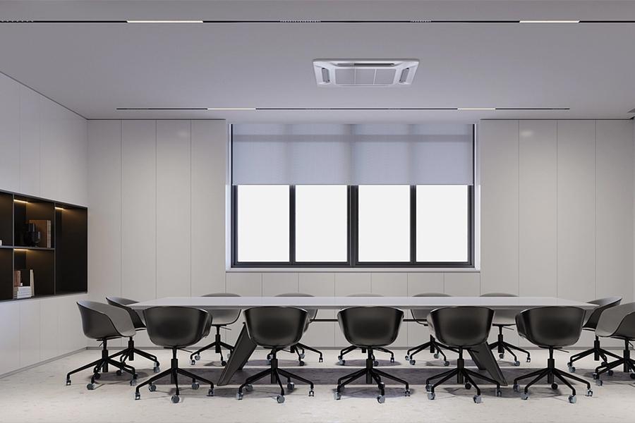 而位于核心区的总裁办公室,则是轻奢与多功能的融合体:黑白灰的基调里,温润的木质地板中和了冷调的锐利,定制的嵌入式柜体以暗藏的灯光勾勒出收纳的秩序,既满足了办公文件的规整,又以艺术摆件点缀出空间的气质;一侧的休闲区以柔软的沙发与肌理感挂画铺陈,工作之余的片刻休憩,或是小型的私密洽谈,都能在这一方空间里自然发生,让办公不再是单一的效率场,更是兼顾质感与温度的私域。相邻的会议室延续了整体的简约调性,石材纹理的会议桌搭配轻盈座椅,既适配高效的商务沟通,又以低调的材质肌理传递出企业的专业感,隐藏式收纳与智能设备的嵌入,让每一次会议都能在整洁与便捷中推进。