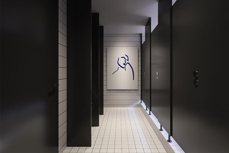 即便是细节之处的卫生间,也藏着四川壹西格玛的设计巧思:浅调瓷砖与深色柜体形成优雅撞色,嵌入式镜柜与智能设施兼顾实用与质感,墙面的艺术装置则让日常的功能空间也晕染着艺术氛围,每一处打磨都在诉说 “办公空间无小事” 的态度。