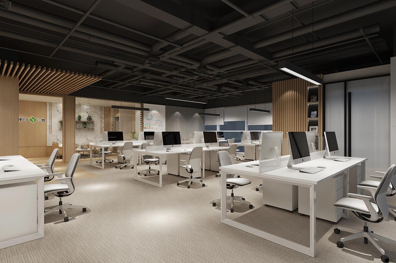 作为内容产出的核心区,开放办公区采用 “现代简约 + 活力潮玩” 的混搭逻辑:主办公区以 “极简白 + 局部木饰面” 为基底,搭配悬浮吊顶灯,柔和的光线消解了长时间伏案的疲惫,适配文案、剪辑等需要专注的工种;