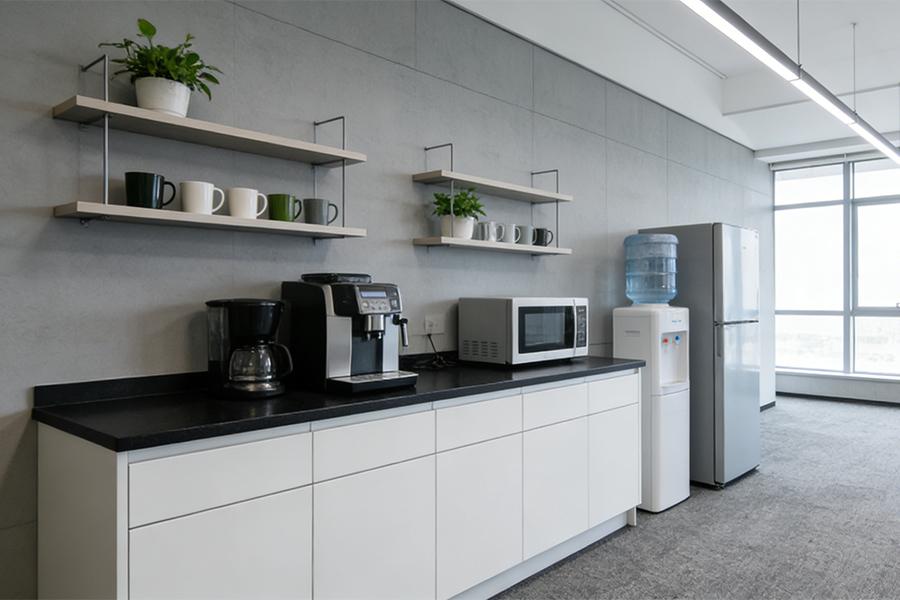 从高管办公室的木质书柜与皮质办公椅,到茶水间的咖啡设备与置物架,再到会议室的简洁长桌与投影配置,我们的设计从不止于好看:在成都金牛区的项目实践里,四川壹西格玛始终以功能先行,美学落地为准则 —— 比如针对创意团队的开放式工位,预留灵活动线;为商务属性企业定制的静谧洽谈区,以玻璃隔断平衡私密与通透;就连茶水间的柜体布局,也兼顾收纳与操作便捷性,让日常休憩更具烟火气。