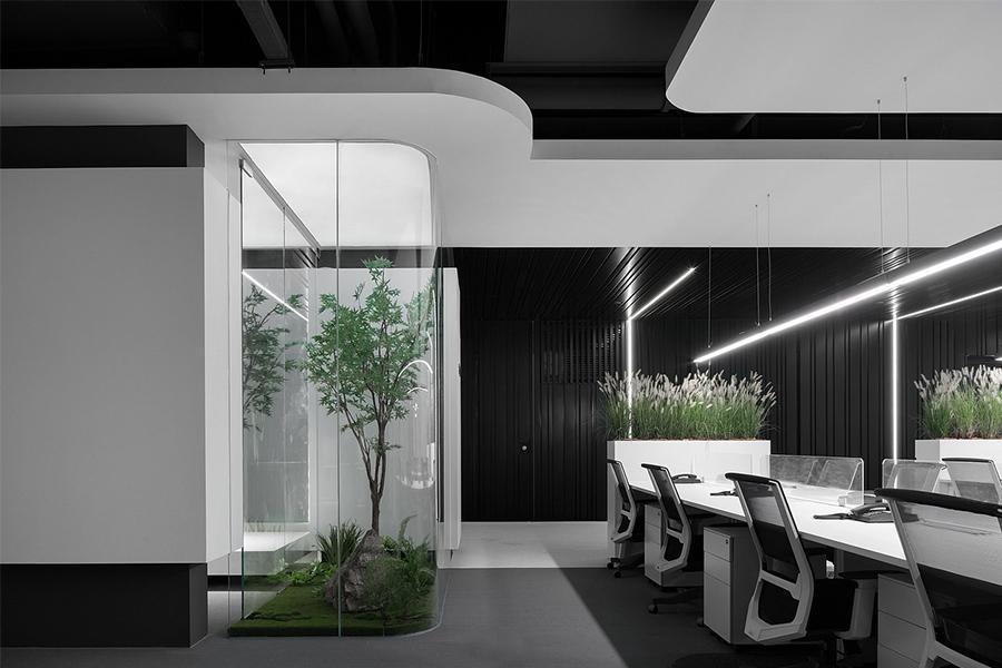 穿过接待区域,开放办公区以 “无界协作” 为设计核心,铺展开开阔通透的空间格局。四川壹西格玛充分利用成都成华区世永大厦办公室的层高优势,采用全玻璃隔断划分功能区域,既保障了空间的采光通透,让自然光毫无阻碍地铺满每个工位,又实现了功能区的软性区隔,避免了传统办公空间的闭塞与割裂。办公区域内,人体工学设计的办公椅与简洁实用的工位桌完美适配,桌面高度与抽屉布局经过反复调试,契合日常办公的操作习惯,有效减轻长时间办公带来的身体疲劳。天花板上,嵌入式筒灯与线性灯带组合形成均匀柔和的照明系统,替代了传统荧光灯的刺眼光线,为长时间专注工作提供了舒适的视觉环境。在办公区的角落,四川壹西格玛特意植入微型自然景观,几株绿植与苔藓、置石相映成趣,既成为空间的视觉焦点,又为紧绷的工作节奏注入自然气息,让员工在抬眼间便能获得片刻舒缓。
