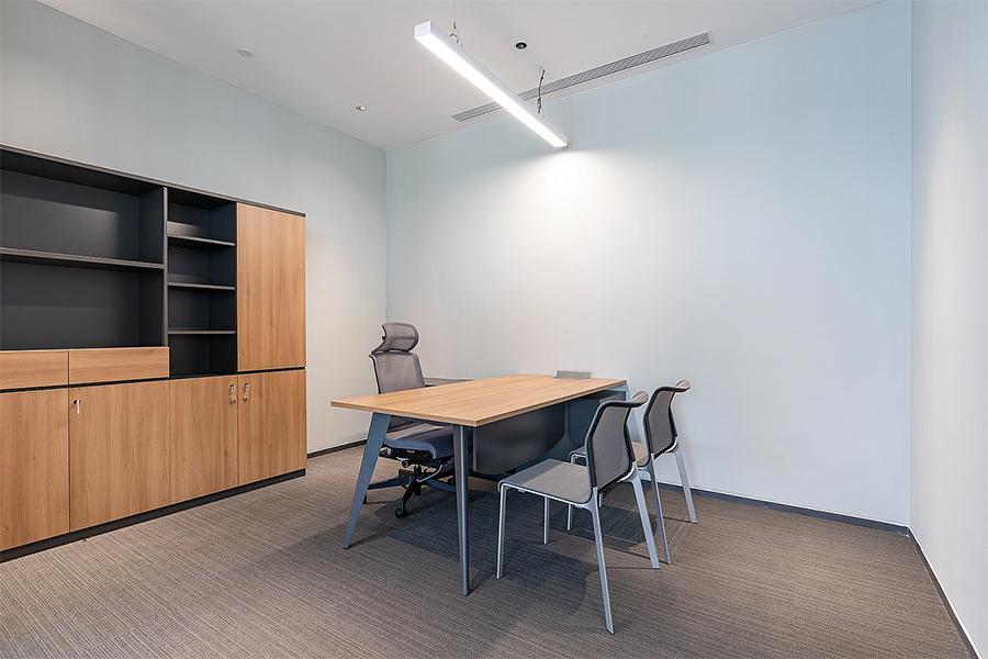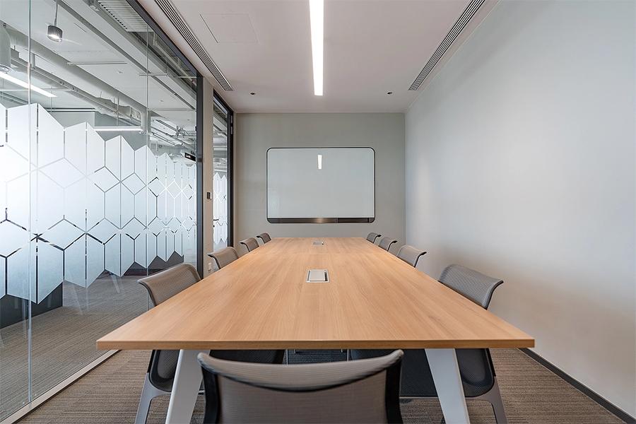 会议室作为决策与协作的核心场景,我们采用模块化设计适配多元需求。小型洽谈室以木质桌面与简约座椅组合,满足私密沟通;中型会议室配备高清显示屏与书写白板,支持高效演示;大型会议空间以超长原木桌为核心,环绕式座椅布局强化团队向心力,适配企业不同规模的会议需求。
