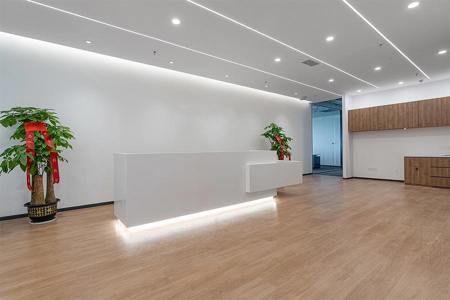 走进由我们打造的办公前台,极简白色接待台与温润木色地面形成层次分明的视觉效果。内嵌式灯带勾勒出柔和轮廓,搭配生机盎然的绿植,传递出专业与温度兼具的第一印象。这不仅是空间的入口,更是企业对外展示品牌气质的第一张名片。