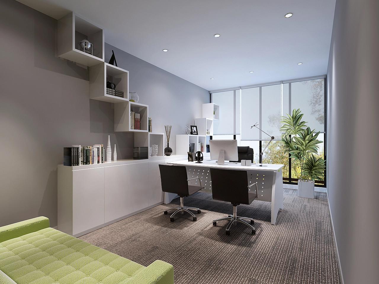 为核心管理者和技术骨干打造的独立办公室,在设计上兼顾了专业感与舒适度。高管办公室采用木色与深棕的沉稳配色,整面原木书架陈列着专业书籍与藏品,营造出严谨且富有底蕴的办公氛围。皮质沙发与茶几的组合,让空间兼具办公与接待功能,既体现了企业的专业形象,也为重要洽谈提供了舒适的场景。小型独立办公室则以浅灰与白色为主色调,悬浮式置物架与矮柜的组合,在满足收纳需求的同时,让空间更显轻盈。靠窗的绿植与浅绿色沙发,为需要深度思考的研发人员增添了柔和感,让专注工作不再是紧绷的状态。