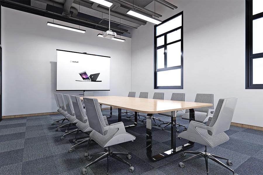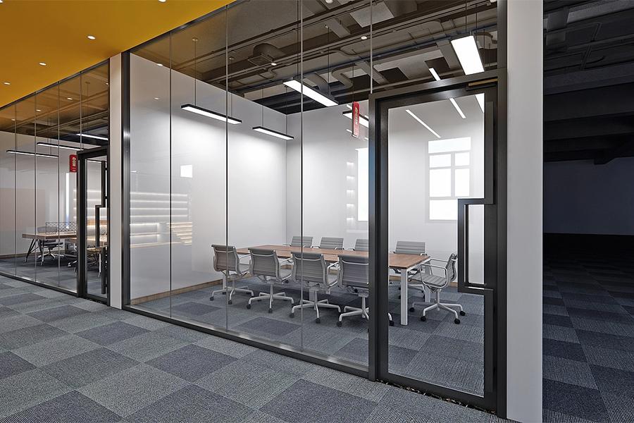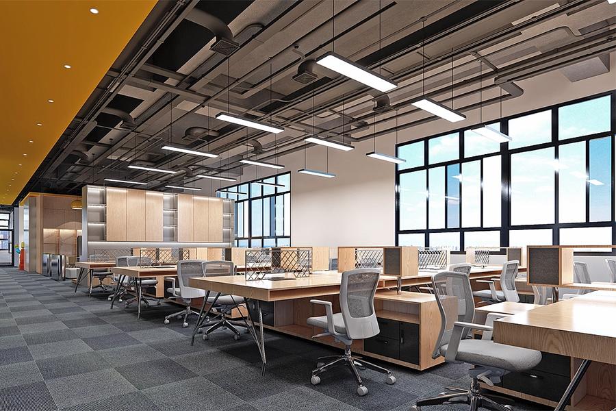 开放式办公区采用浅木色工位与金属框架的组合,搭配半高隔断保障隐私,既满足了高效协作的需求,又为个体专注创造了舒适边界。裸露的顶面管线与线性吊灯形成层次分明的视觉节奏,大面积落地窗引入充足自然光,让空间在硬朗的工业质感与柔和的人文氛围间达成精妙平衡。四川壹西格玛建筑工程有限公司在动线规划上,通过玻璃隔断划分出独立会议室与开放协作区,透明材质既保障了空间的通透感,又让不同功能区的互动可见可感,真正实现 “开放而不嘈杂,独立而不孤立” 的办公体验。