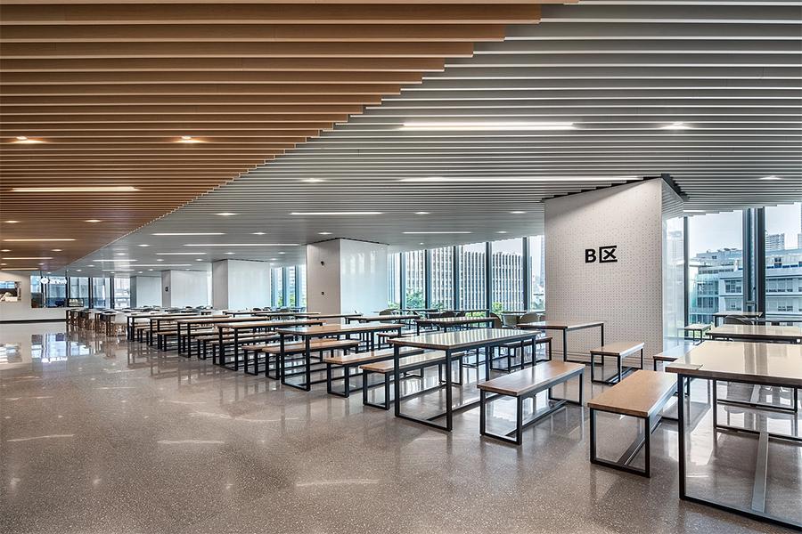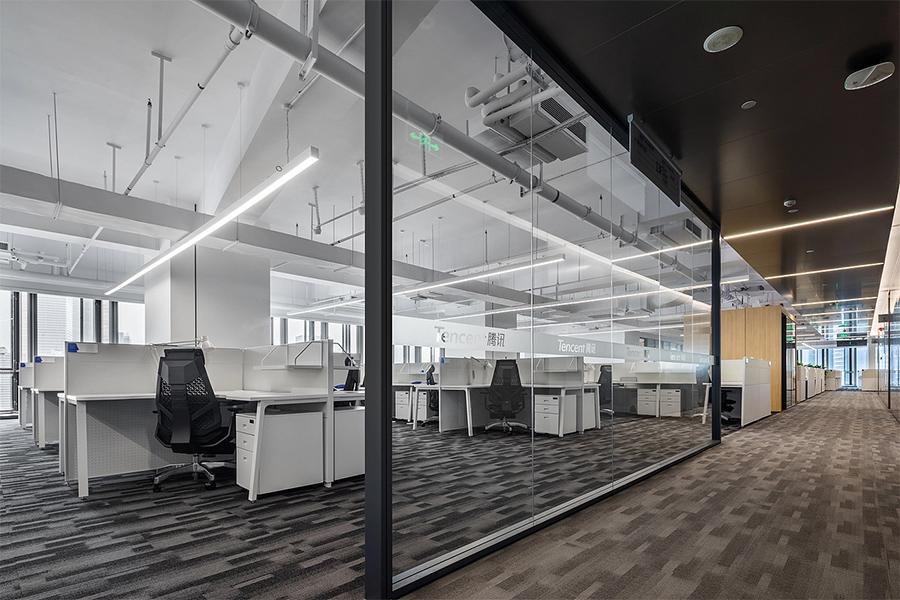 开放办公区的设计,更是体现了我们对效率与协作的深刻理解。合理的工位布局、充足的自然采光与静音设计,既保障了个人工作的专注度,又为团队协作提供了便利。裸露的管线与简约的灯具,在展现工业美学的同时,也让空间更具通透感与现代感。