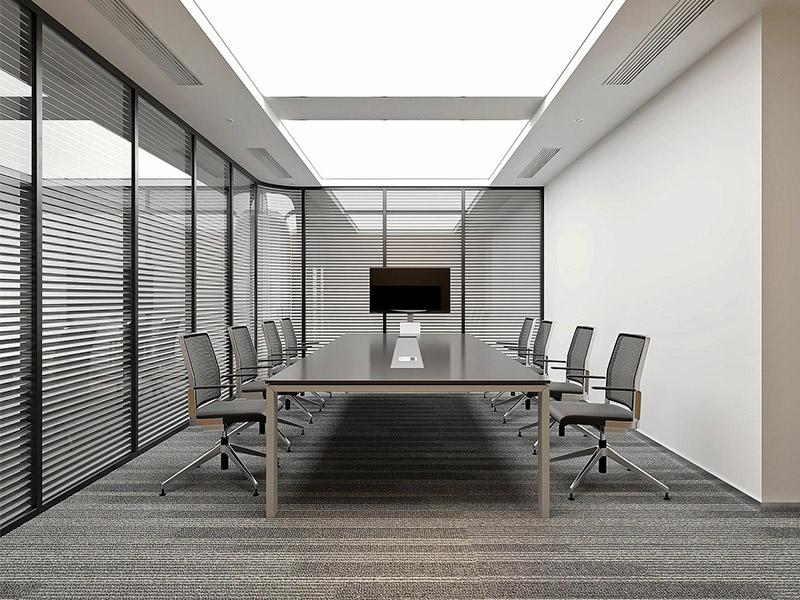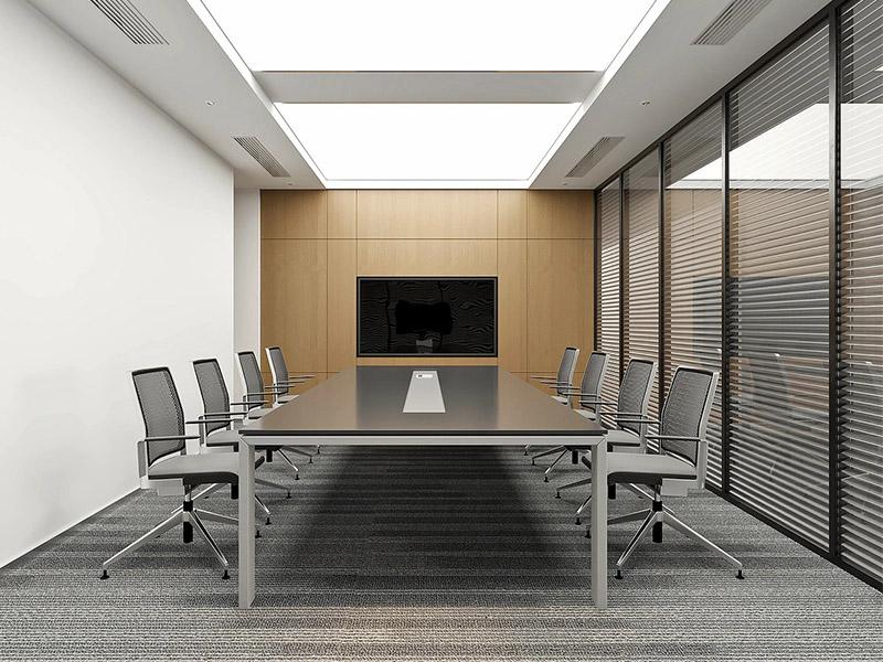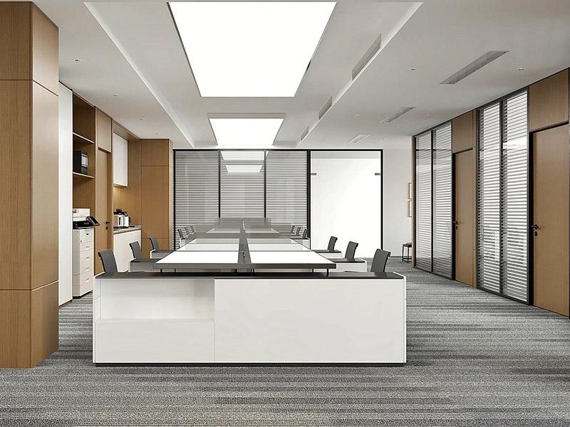 这款办公空间以白、灰为基底,搭配自然温润的木色,精准拿捏现代简约风格的核心——简洁、通透、高效,低饱和度的中性色褪去冗余装饰,让整个办公空间显得清爽开阔,彻底打破传统办公空间的压抑与刻板。同时,壹西格玛巧妙融入新中式元素,低调内敛的木饰面贯穿空间,搭配意境悠远的中式山水挂画,没有繁复的雕花堆砌,仅以简约线条与自然肌理,为冰冷的办公场景注入东方美学的温润质感,实现了现代简约的利落与新中式的雅致无缝衔接。作为深耕本土的设计企业,壹西格玛精准把握风格与需求的平衡,会议室采用全玻璃隔断搭配百叶设计,既延续了现代简约的通透感,又能灵活调节隐私,长桌与专业办公椅的组合搭配嵌入式顶灯,营造出专注高效的会议氛围,而墙面的木饰面设计,则与整体新中式调性呼应,更添几分稳重雅致,让会议室既具实用性,又有美学格调。
