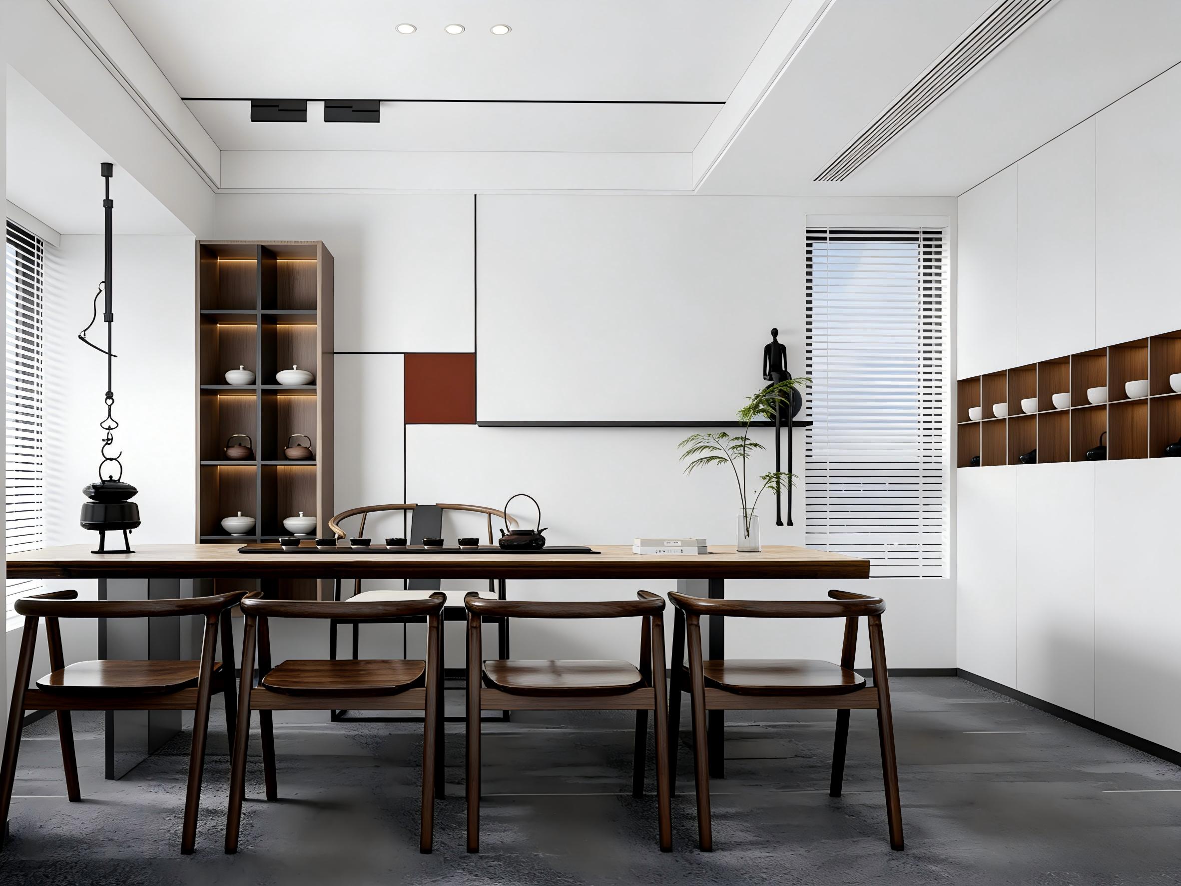 在功能设计上,壹西格玛深谙企业需求,以“六维设计”思维打造高效动线。开放办公区采用模块化布局,搭配线性照明与降噪地毯,兼顾协作效率与办公舒适度;独立办公室兼具办公与会客功能,定制柜体兼顾收纳与展示,彰显企业品味;茶室等休闲空间则以实木家具搭配自然绿植,打造动静分离的放松场域,实现效率与松弛的平衡。
