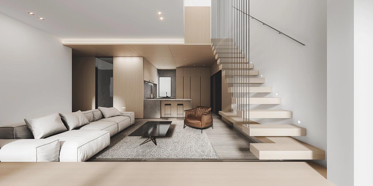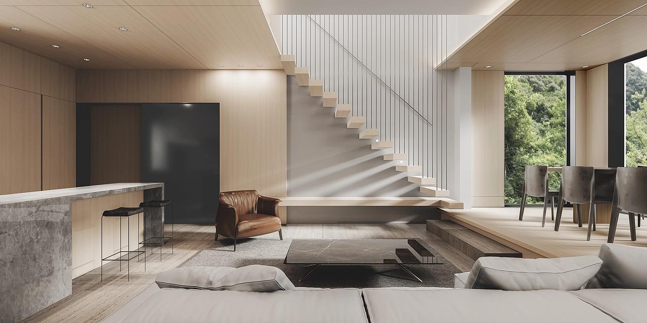 在公共空间的公装规划中,800平的体量得到充分利用,核心区域采用LDK一体化设计,将客厅、餐厅、厨房进行开放式布局,打破传统空间的割裂感,形成一个开阔通透的核心活动区,既方便家人、朋友聚会互动,又让空间显得更加舒展大气。空间的视觉焦点定格在悬浮楼梯上,采用原木踏步搭配纤细金属扶手,轻盈通透的设计既满足垂直交通的核心功能,又兼具极强的艺术感,原木的温润与金属的利落形成巧妙对比,成为串联各个空间的美学纽带。