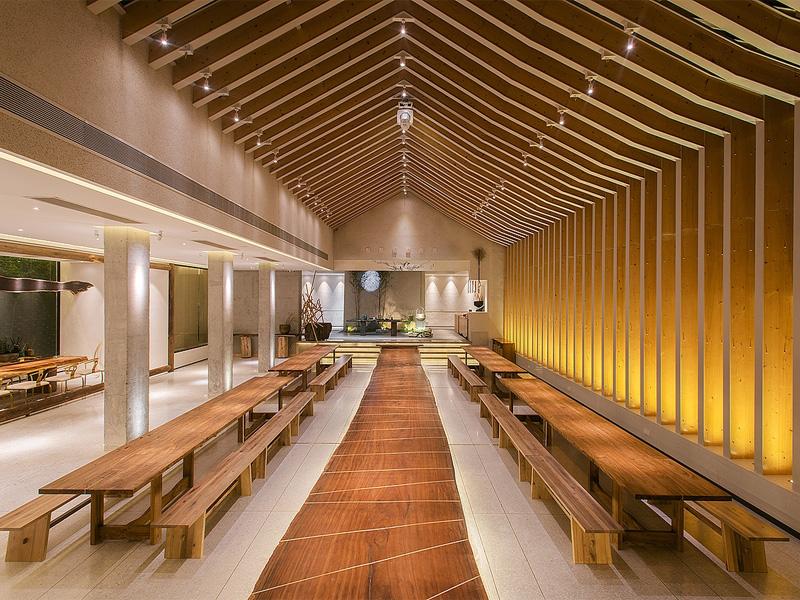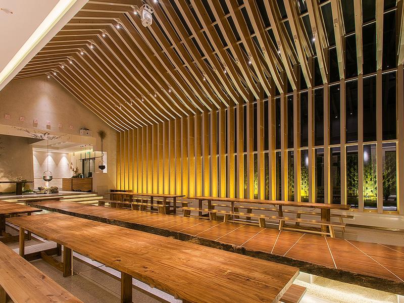 公共空间则是另一番天地。我们以木质格栅构建出富有韵律感的立面,在保证通透感的同时,巧妙划分了功能区域。长桌与长凳的排布,既满足了多人聚会的需求,又通过木材的自然纹理,传递出质朴而温暖的气息。这种设计不仅是美学的表达,更是对成都民宿酒店设计中 “运营优先” 原则的践行 —— 在保证视觉效果的同时,最大化提升了空间的使用效率。