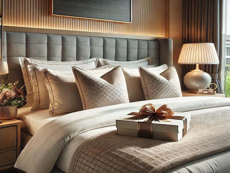 色彩与材质的碰撞,是塑造空间气质的基石。金牛区 800 平米的现代轻奢酒店多以米白、浅灰、暖棕等中性色为基底,褪去张扬的色彩,让空间回归沉静与雅致。这种克制的配色,恰好为材质的表达提供了舞台:温润的原木线条勾勒出空间轮廓,传递自然的温度;大理石墙面与台面以其天然纹理,注入冷冽而高级的质感;而黄铜、香槟金等金属元素则作为点睛之笔,在灯具、五金件中悄然绽放,让低调的空间瞬间拥有了精致的轮廓。亲肤的丝绒床品、柔软的棉麻织物,则从触觉层面强化了舒适体验,让轻奢不仅是视觉的享受,更是身心的放松。