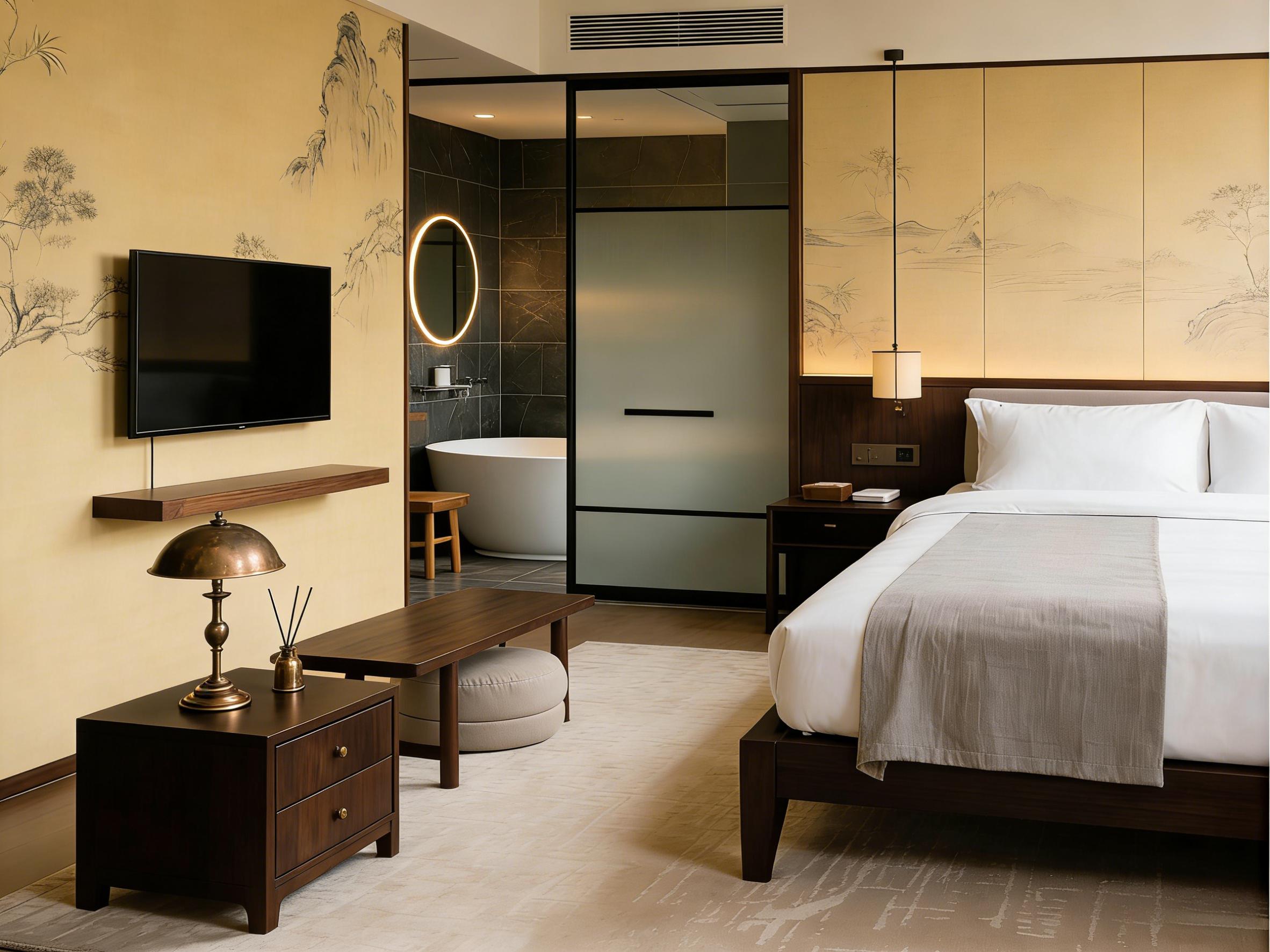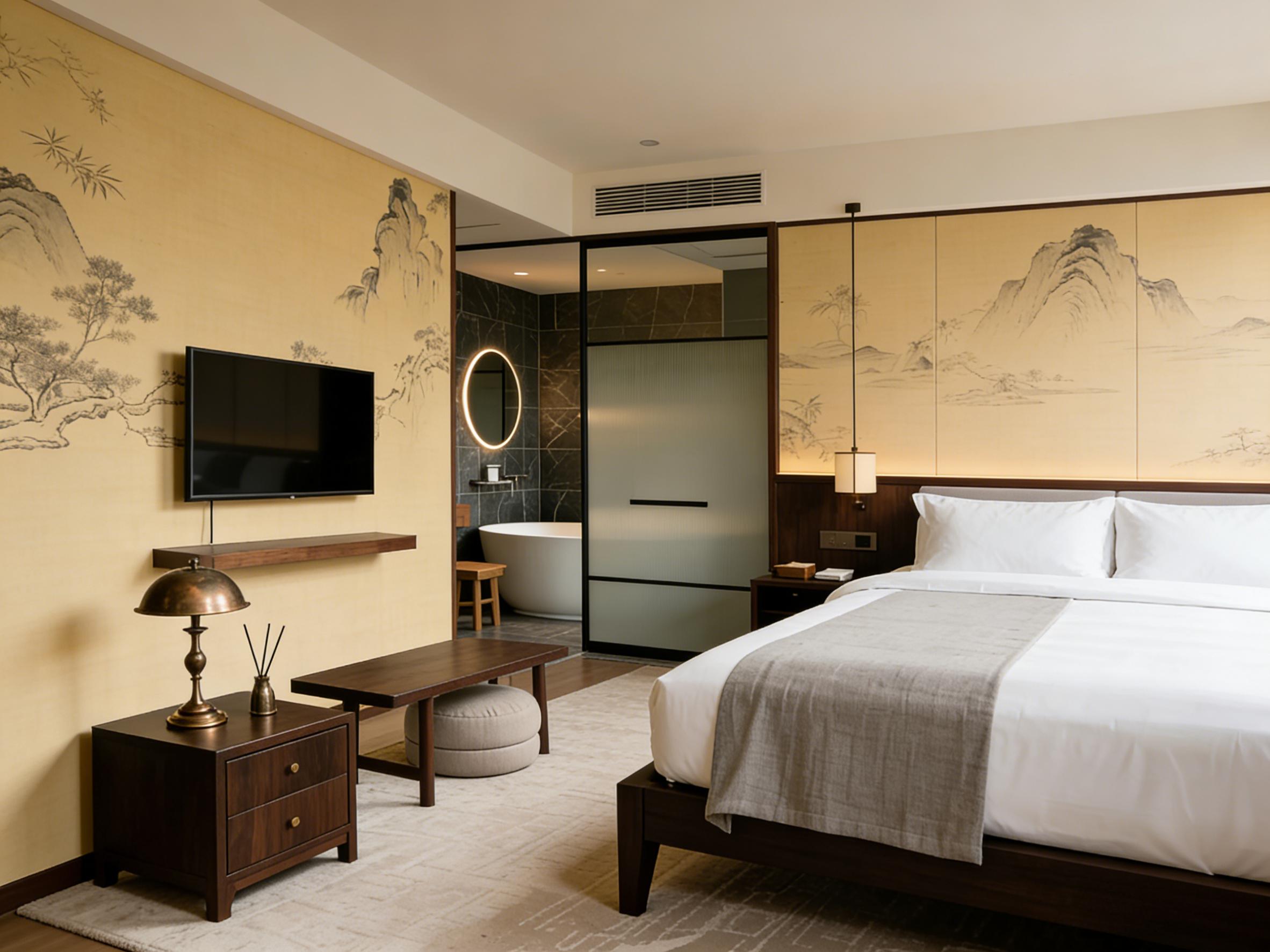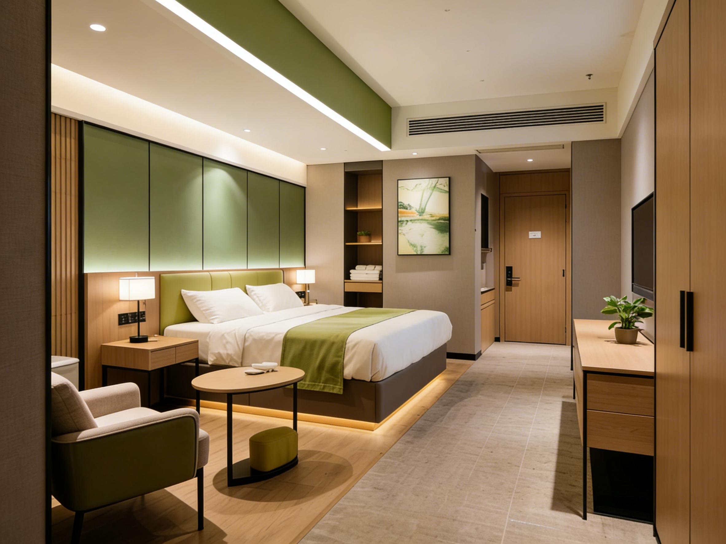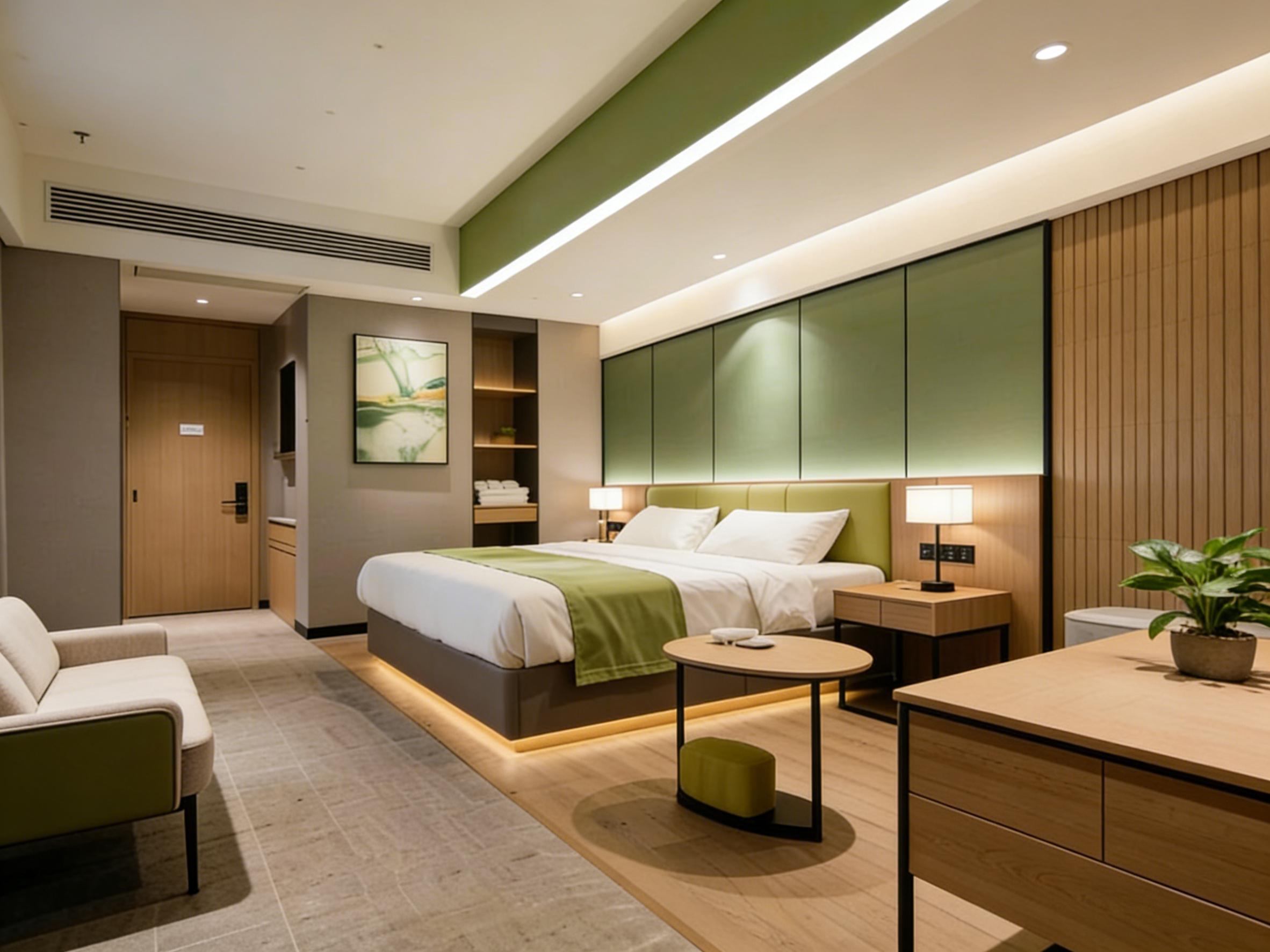 壹西格玛的酒店设计从不追逐浮夸潮流,而是以多元风格适配不同场景需求,其中侘寂风与现代简约风最具代表性。在青城山、龙泉山等山野间,团队打造的侘寂风酒店民宿,以微水泥、天然石材与实木为核心材质,大地色系为主调,搭配大面积落地窗引景入室,消弭室内外边界,传递“不完美之美”的松弛感,成为都市人疗愈身心的栖居地。而在成都武侯区等都市核心区,现代简约风商务酒店则凸显高效雅致,大理石与金属线条勾勒质感,功能分区清晰,兼顾办公与休憩需求,贴合商务旅客的核心诉求。