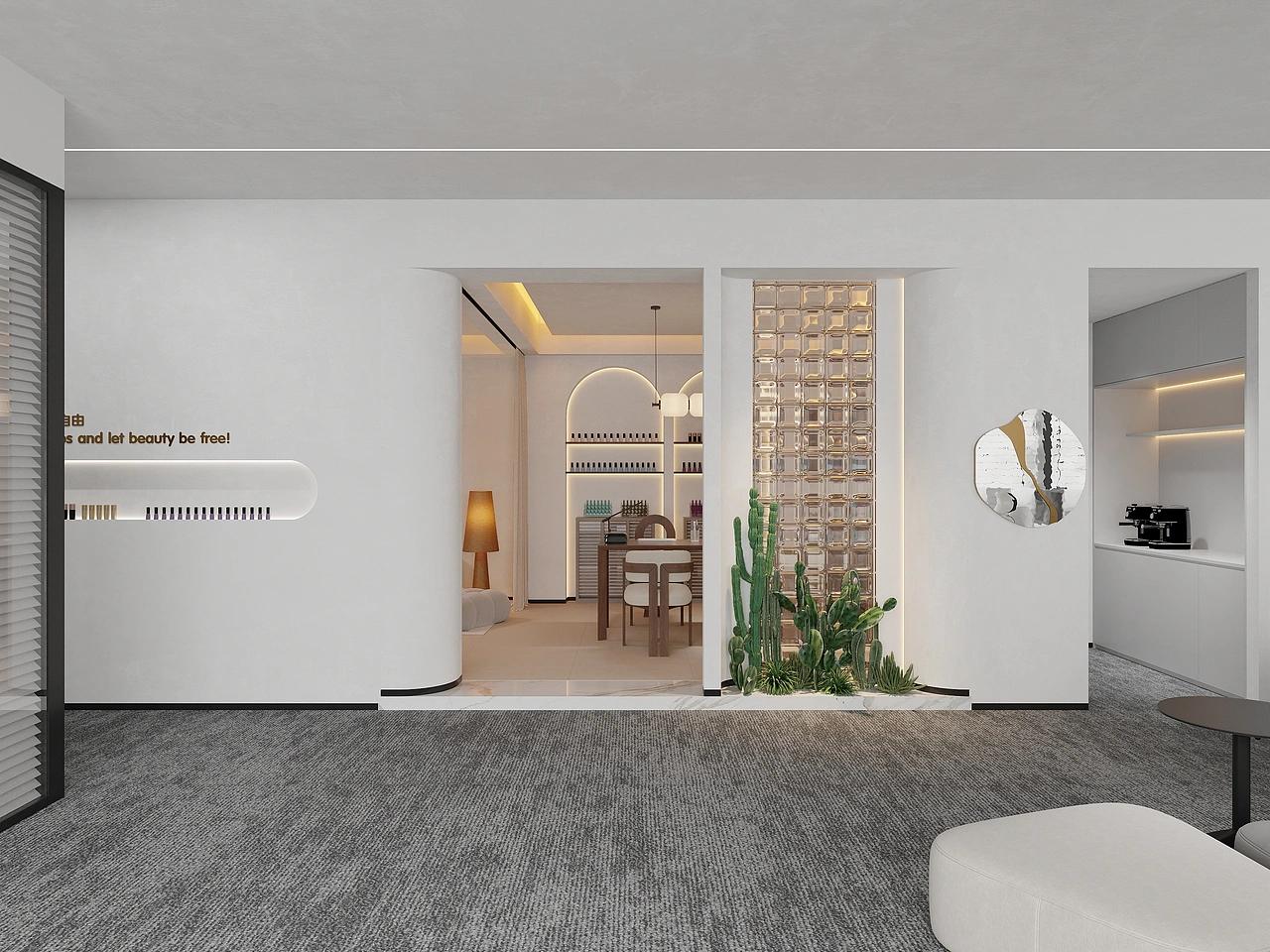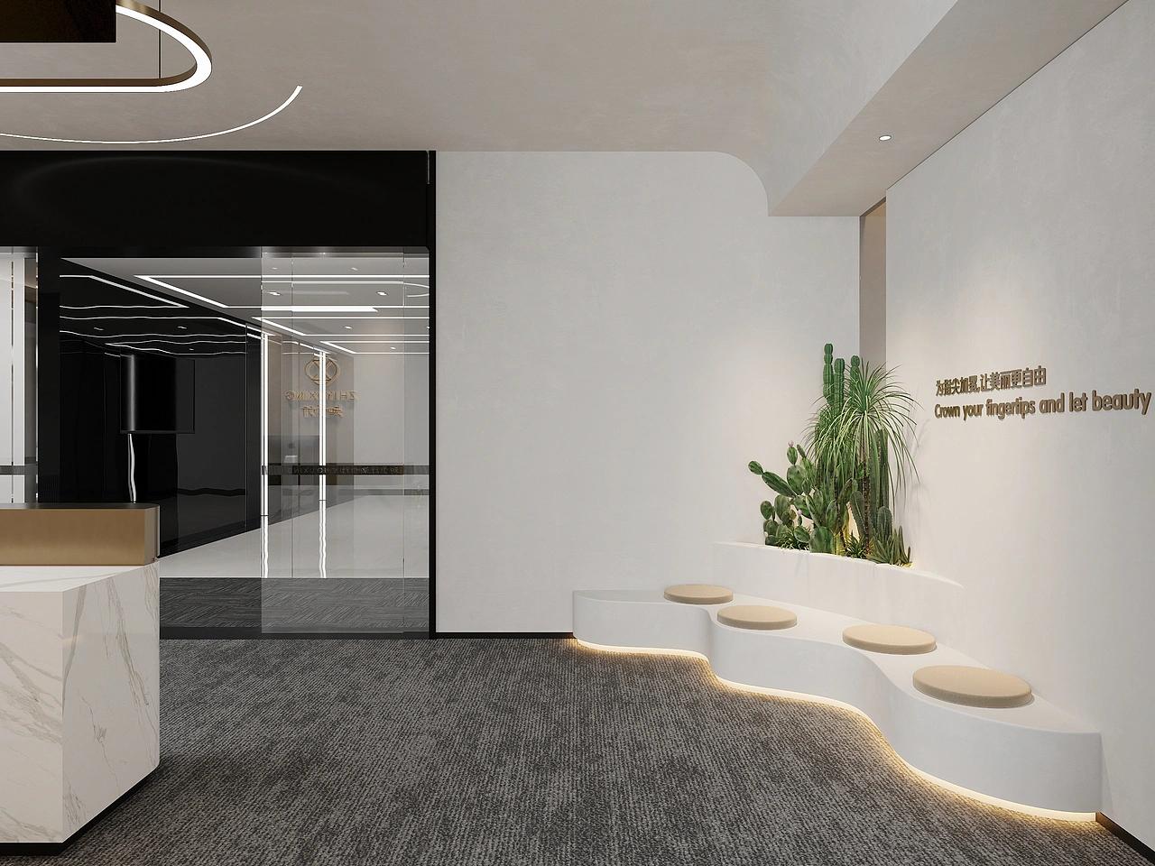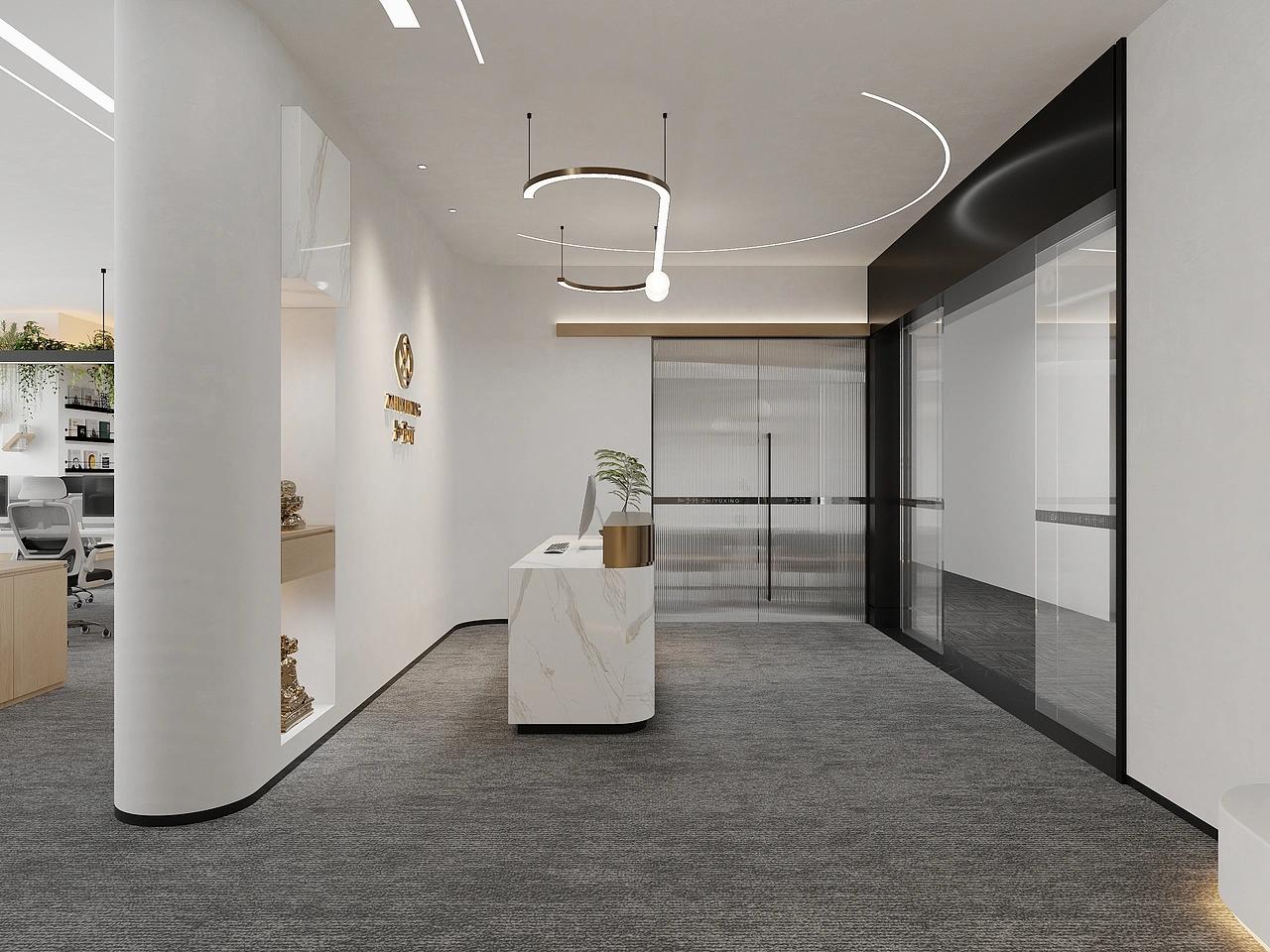 此次公装设计还注重细节打磨,局部融入弧形墙面、玻璃砖等巧思设计,弱化直线条带来的硬朗凌厉感,让空间层次更丰富、线条更柔和,于细微处提升整体质感。