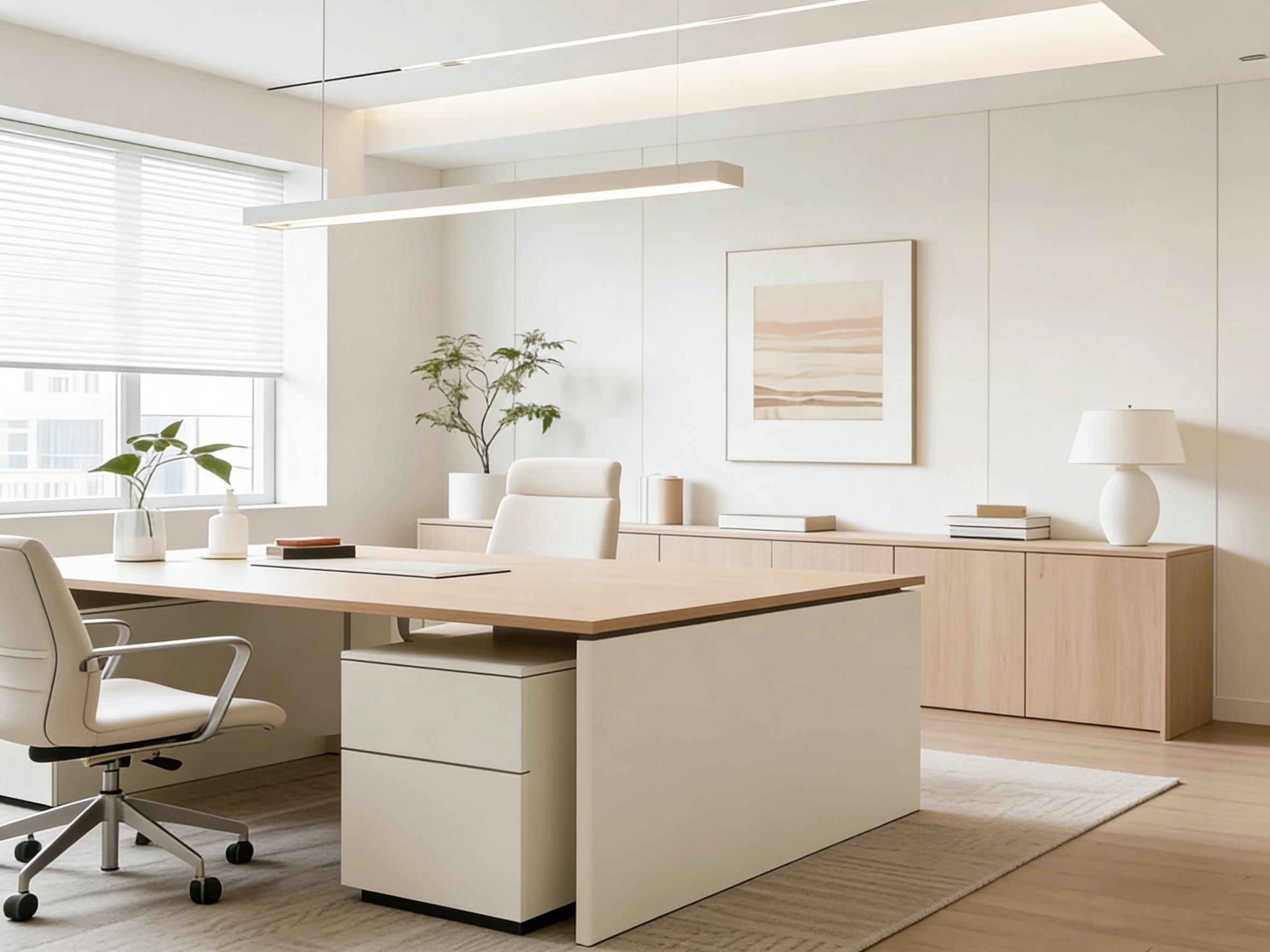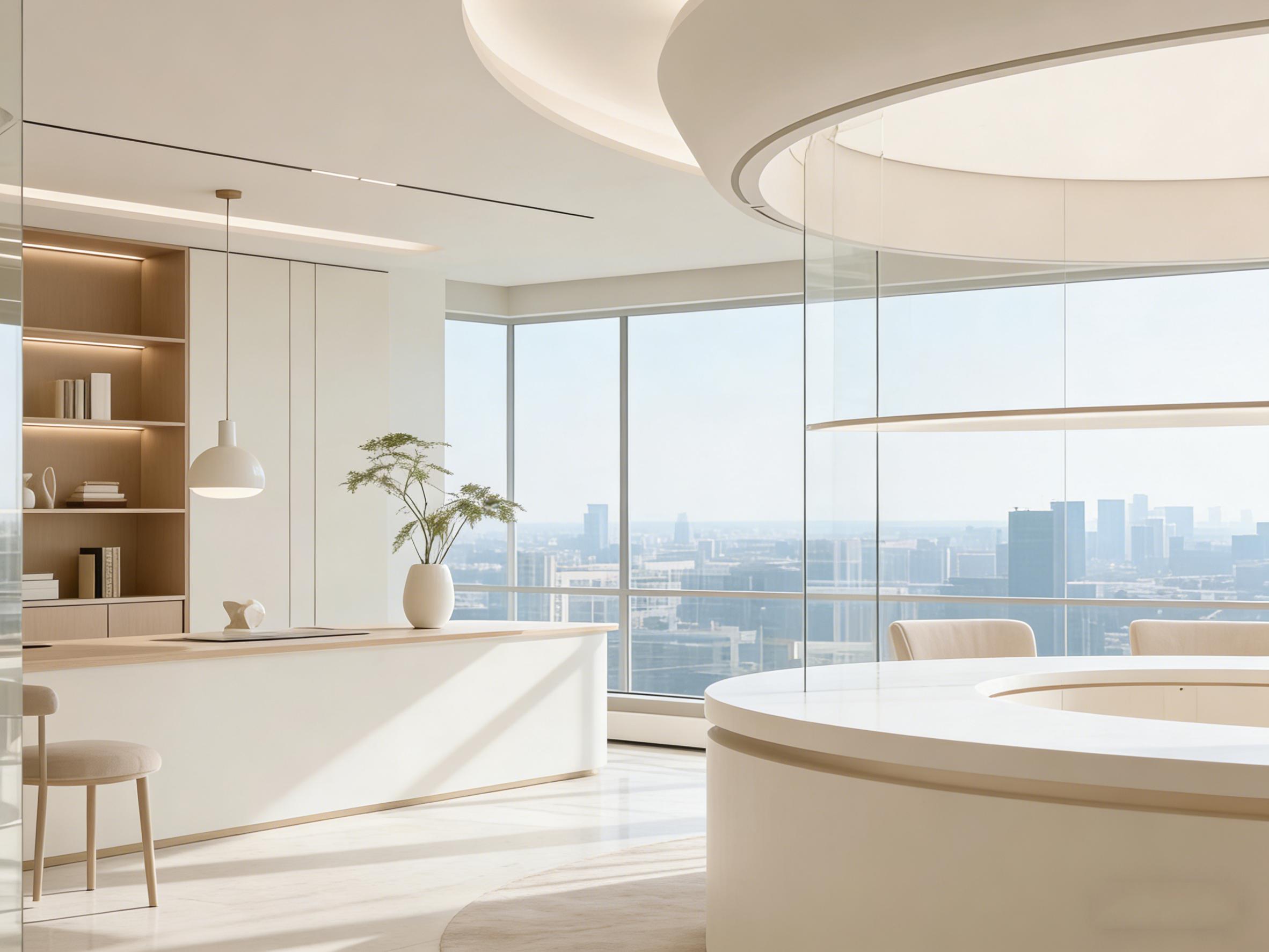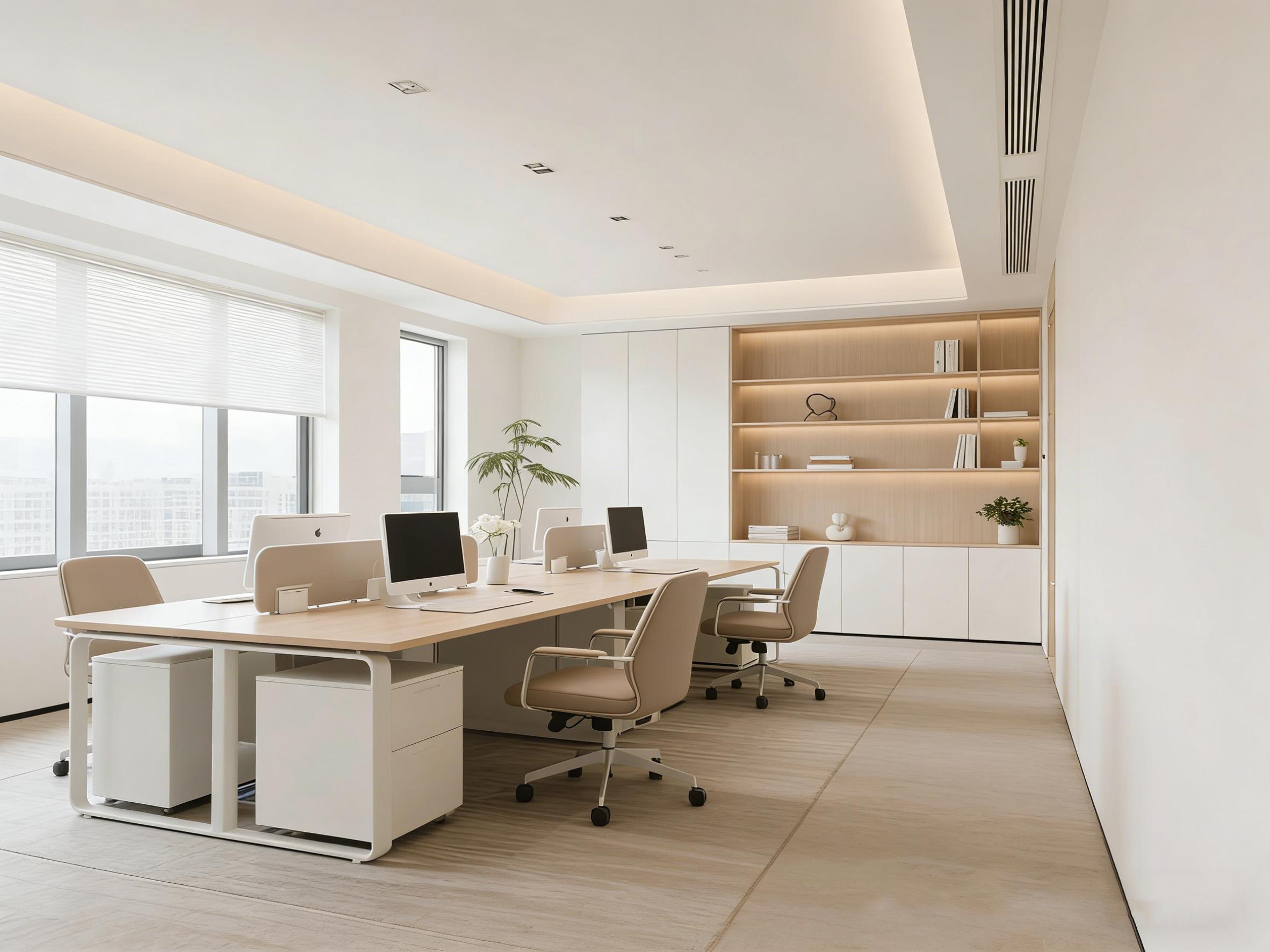 在成都青羊区万和中心这座汇聚商务活力的现代地标里,四川壹西格玛建筑工程有限公司以「流动的光与形」为核心设计理念,深度洞察企业办公需求,为客户打造了一处兼具高效办公与人文温度的精品办公空间。该项目摒弃传统办公空间的冗余装饰,以纯净的象牙白为空间主色调,搭配温润的浅木色作为点缀,最大化引入自然光线,让窗外的城市天际线与室内空间无缝衔接,营造出通透、开阔的视觉体验。