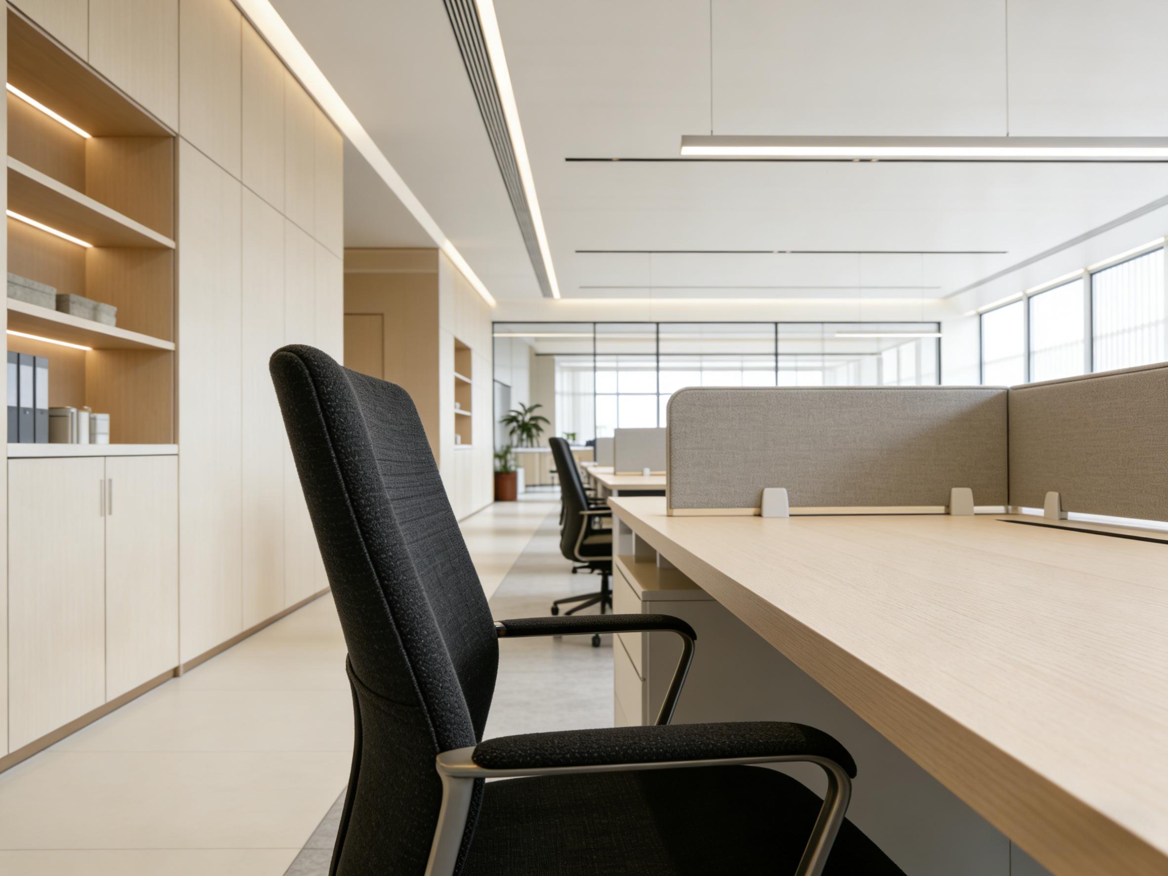 在办公室装修风格打造上,壹西格玛精准匹配不同企业的品牌调性与办公需求,构建三大主流设计体系。现代简约风是其招牌风格,以黑白灰为基础色调,搭配浅木色与金属线条,通过克制的色彩搭配与通透布局,营造简洁大气、高效干练的办公氛围。无论是新都区厂房办公室的黑白顶墙搭配线性灯带,还是成华区商务公司的白色弧形接待台与木质背景墙,都在简约中尽显质感,同时兼顾空间通透性与实用性。