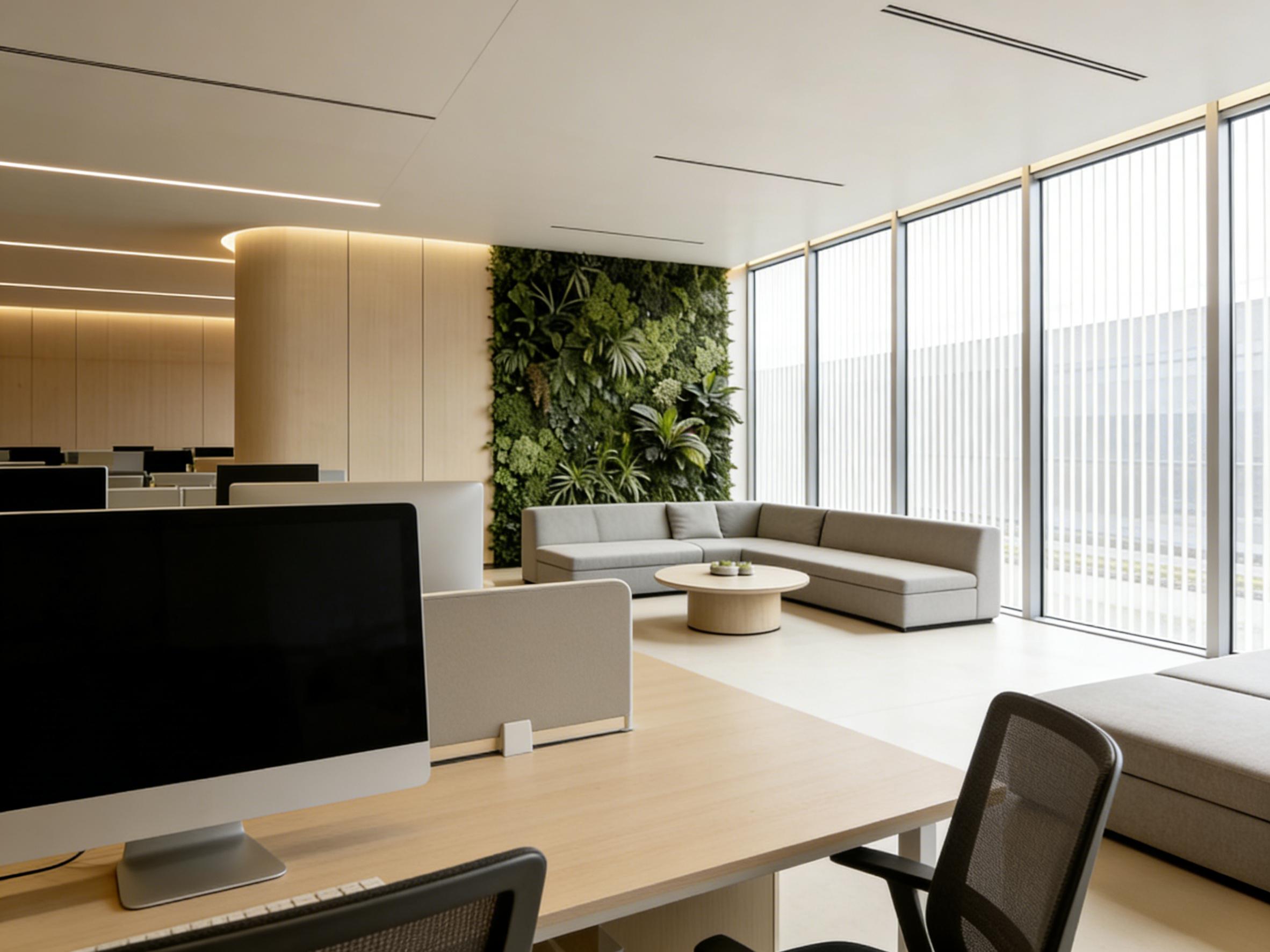 在材质与空间规划上,壹西格玛兼顾实用与增值。开放办公区用模块化工位与绿植隔断平衡协作与专注;会议室配备高清显示设备与人体工学座椅,保障沟通效率;休闲区以灵动布局与柔和色彩,为员工提供创意迸发的放松空间。同时,通过精选主材、优化工艺实现高性价比装修,帮助企业降低投资风险,最大化空间价值。