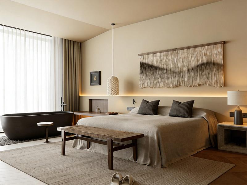 每一间客房,都是一次关于生活美学的探索。我们深耕成都精品酒店装修设计领域,以多元风格为载体,为城市旅人打造兼具舒适感与设计感的休憩空间。
