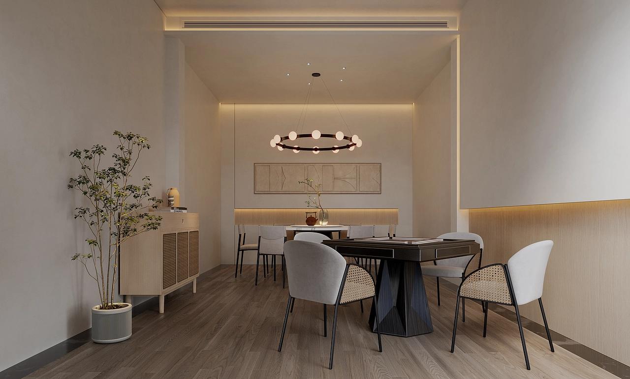 侘寂风源自日本美学,强调自然、质朴与不完美的永恒之美,恰好与青城后山远离喧嚣、静谧清幽的气质高度契合,1600平的开阔空间,也为这种美学的落地提供了充足的发挥余地,让每一处设计都能兼顾空间感与体验感。