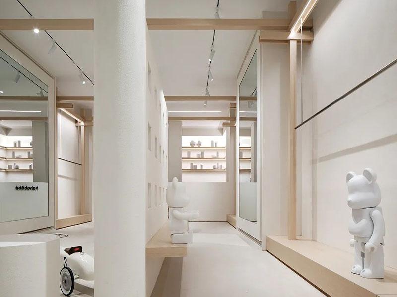 壹西格玛始终坚持商业工装“美观落地、实用优先”的原则,细节设计全程贴合亲子场景需求:选用低矮安全的展示台面,适配孩子的身高与使用习惯,搭配简约童趣的软装小摆件,在极简风格里悄悄融入童真氛围,不繁杂、不突兀。空间尽头预留自然采光区域,搭配绿植点缀,为纯白空间注入生机,也能缓解家长购物时的疲劳感。从整体布局到细节打磨,全程贴合成都本地商业需求与审美,既打造出有辨识度的品牌空间形象,又完全适配门店日常经营,用专业工装实力为商家赋能,让空间真正服务于经营与体验。
