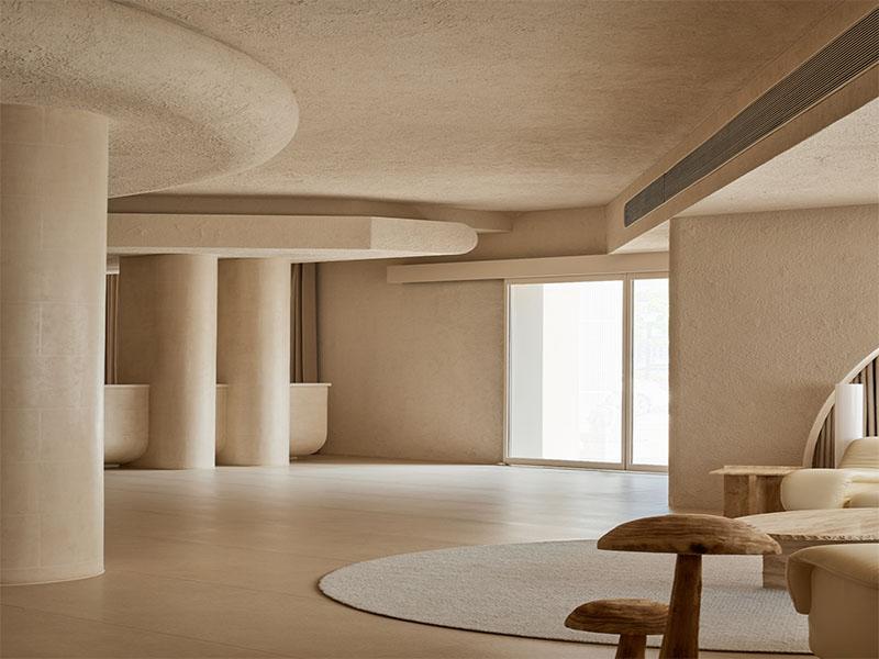 这套设计的核心,是让空间成为“疗愈的容器”:洞穴感结构天然吸音,隔绝外界噪音;大地色系与原生材质,从视觉上舒缓神经;而从公共到私密的节奏控制,让SPA不仅是身体护理,更成为一场精神归位。