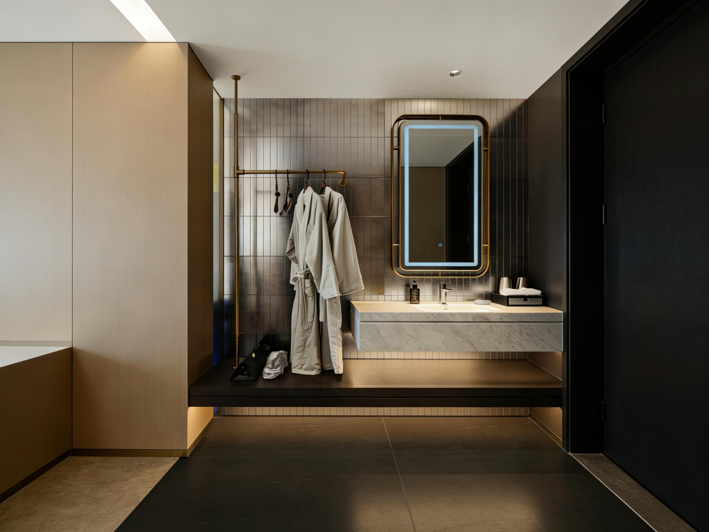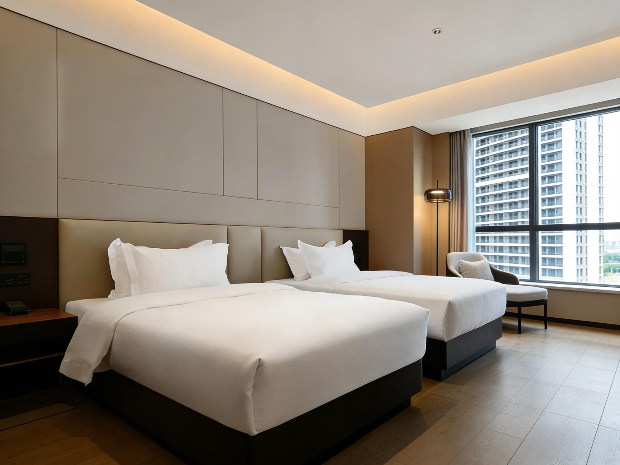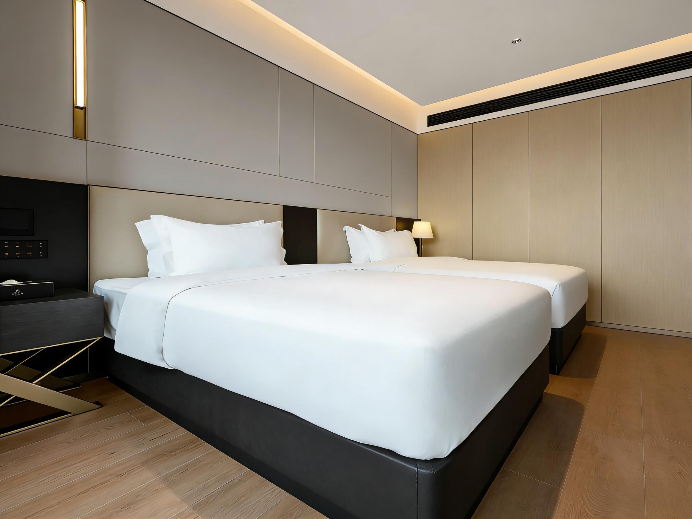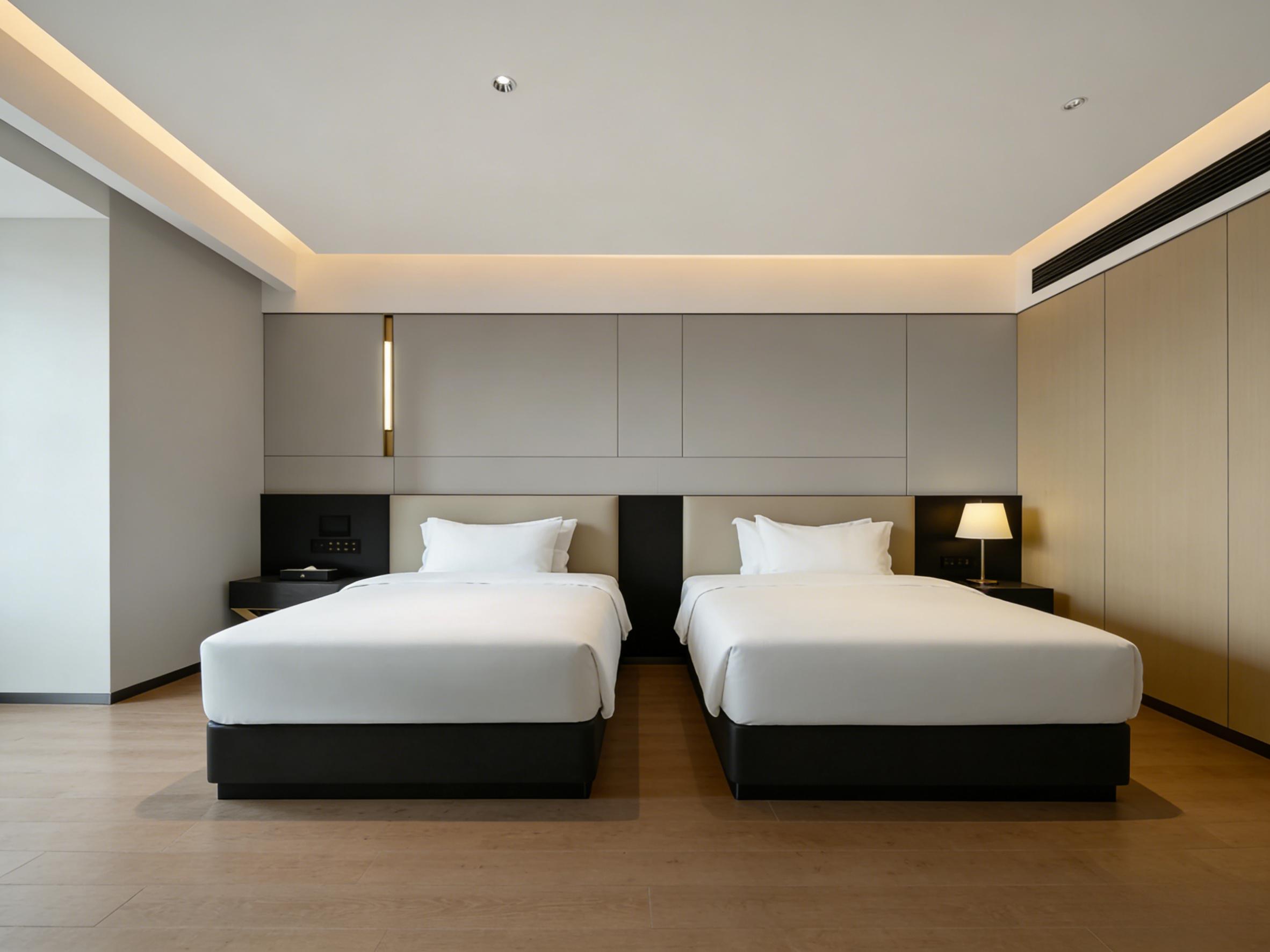 在项目落地过程中,壹西格玛始终把细节与品质放在首位。从前期现场勘测、方案优化,到中期选材施工、进度管控,再到后期验收售后,建立全流程标准化体系。选材上严格甄选E0级环保板材、耐磨防滑瓷砖、防污肌理漆等优质材料,兼顾环保性与耐用性,适配酒店高频使用场景;施工中精准把控接缝、收口、灯光布线等细节,客房干湿分离、嵌入式收纳、分层照明等设计,既提升居住舒适度,又降低后期运维成本。