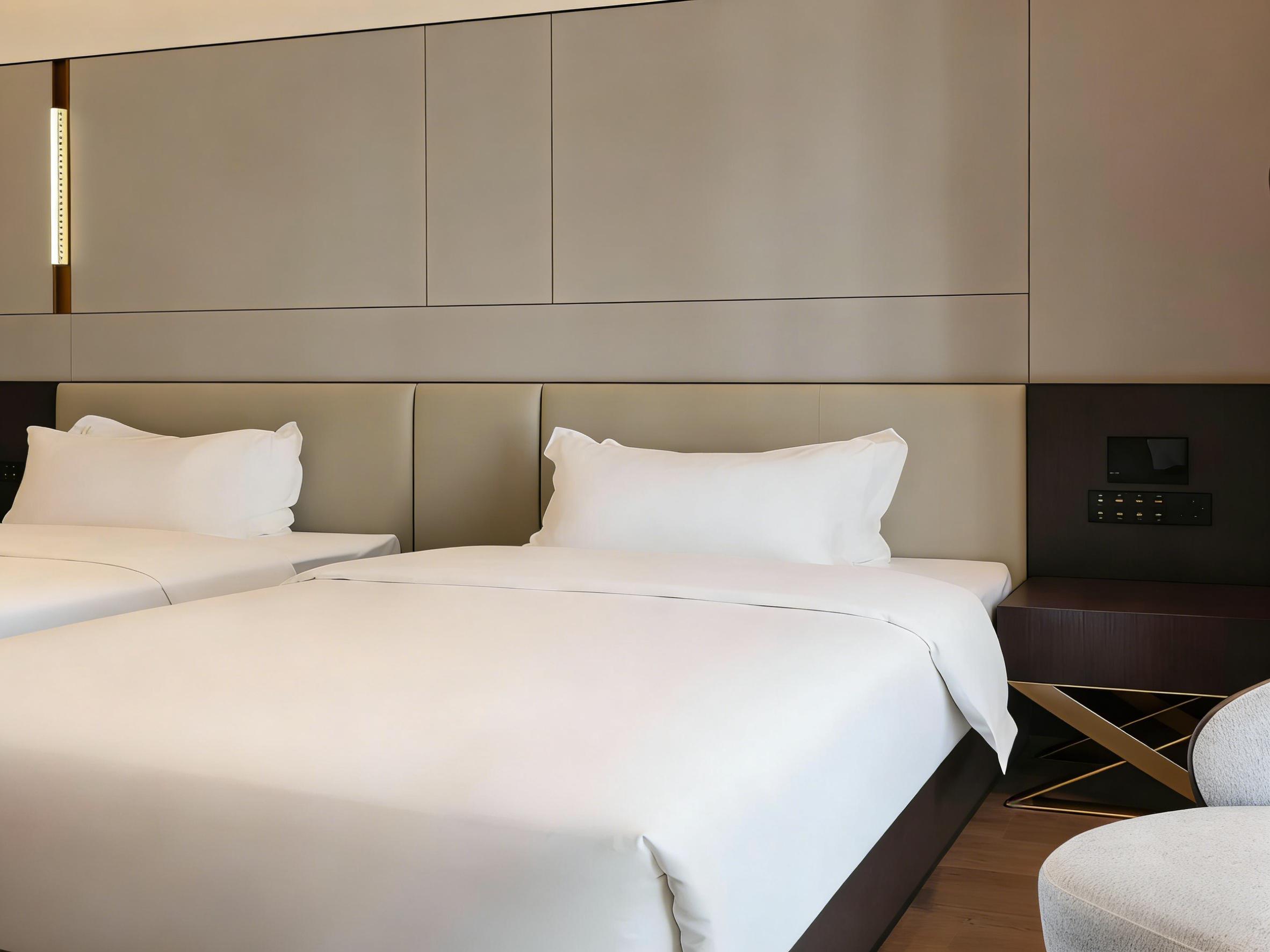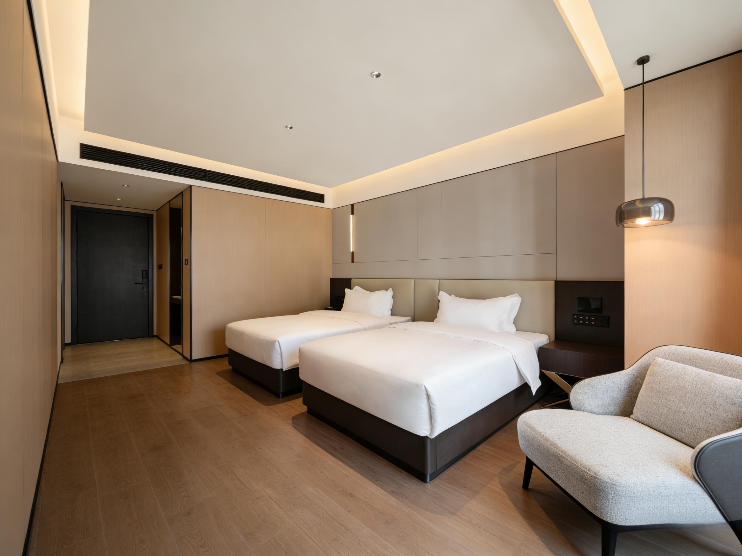 无论是高新区800㎡商务酒店、青羊区1000㎡轻奢酒店,还是双流自然系民宿,壹西格玛都做到了空间利用最大化、美学体验沉浸式。客房内人体工学家具、便捷USB插座、遮光窗帘等贴心配置,大堂模块化布局、走廊氛围灯带等细节设计,让每一处空间都兼具颜值与实用性,完美平衡商业价值与旅居体验。