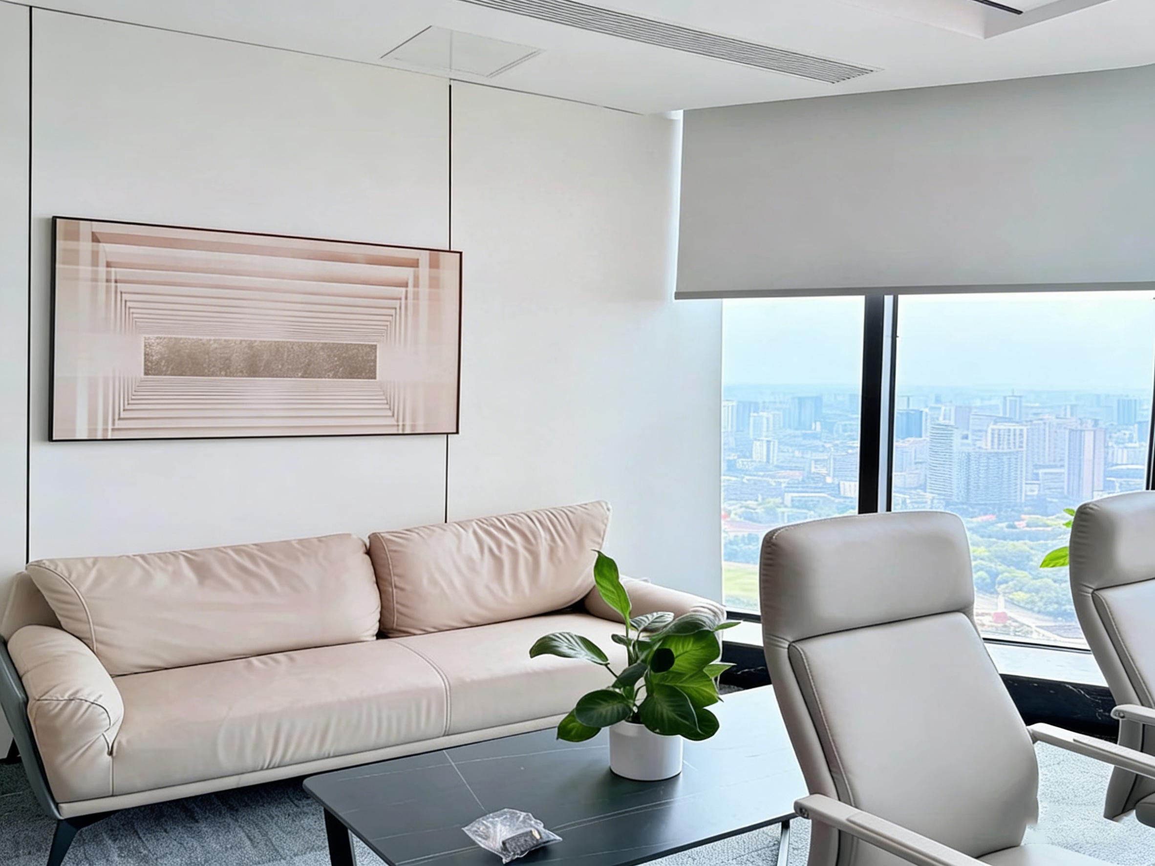项目从企业实际需求出发,将空间划分为开放办公区、多功能会议室、独立高管办公室、休闲接待区四大核心模块。开放办公区采用浅色系模块化办公桌与透气网布座椅,搭配低饱和度地毯与绿植点缀,既保证了团队协作的通透感,又通过物理隔断实现了适度的隐私保护,让员工在开阔的环境中高效协作。