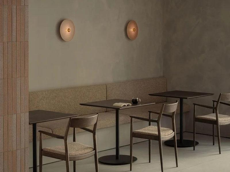 灯光是壹西格玛营造氛围的关键语言。摒弃了刺眼的主灯,转而用三盏铜色圆形壁灯作为视觉锚点,暖黄光晕在墙面上晕染开,如同成都冬夜里的街头路灯,温柔而治愈。顶部的几何金属线条灯则以极简姿态点缀其间,既满足了基础照明,又为空间注入了一丝现代精致感,让松弛与精致达成巧妙平衡。