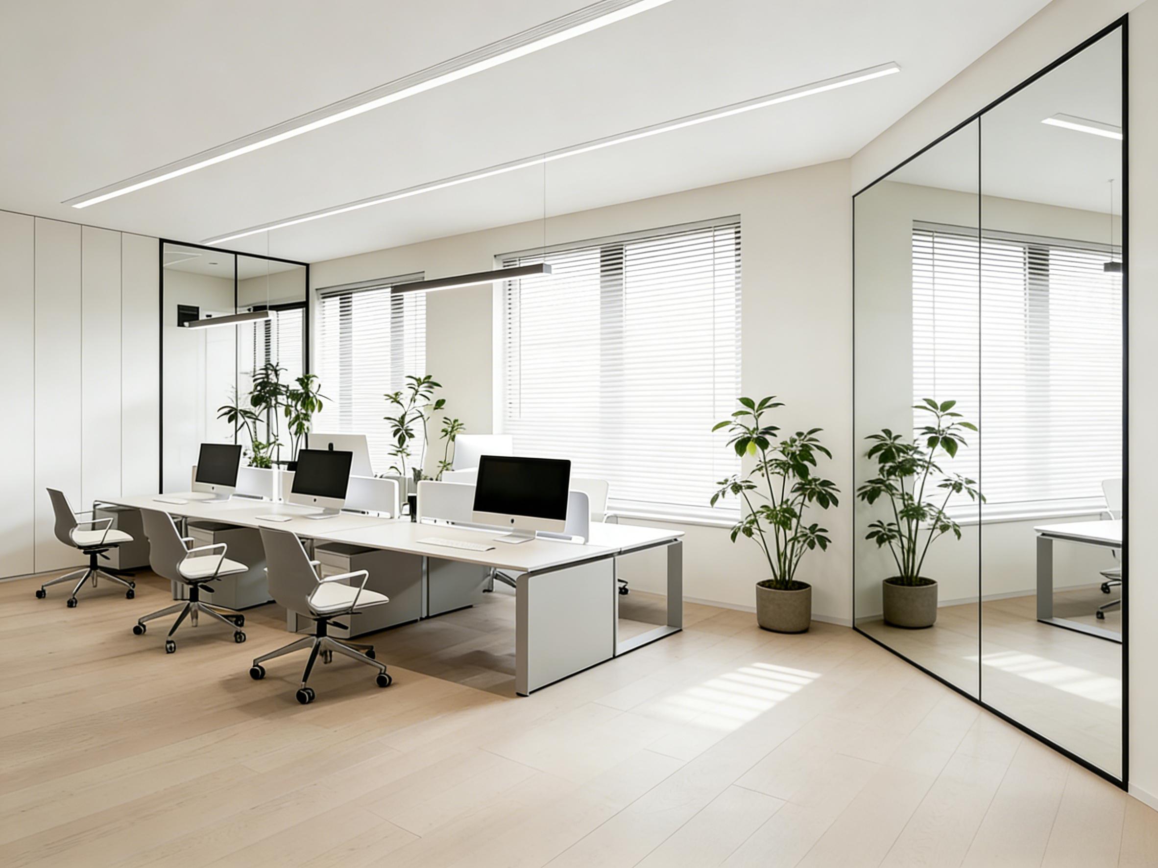 在实际案例中,壹西格玛的设计实力可见一斑。无论是成华区融锦城230平的禅意办公空间,还是青羊区凯乐广场300平的松弛感办公区,亦或是天府新区的现代科技风办公室,每一处设计都藏着匠心。浅米白与浅橡木纹的柔和基底、黑框玻璃的通透质感、线性灯光的氛围营造,搭配合理的分区布局,既保证了商务洽谈的仪式感,又实现了高效协作的办公需求,更预留了员工放松的休闲空间,让“高效与松弛共生”成为现实。