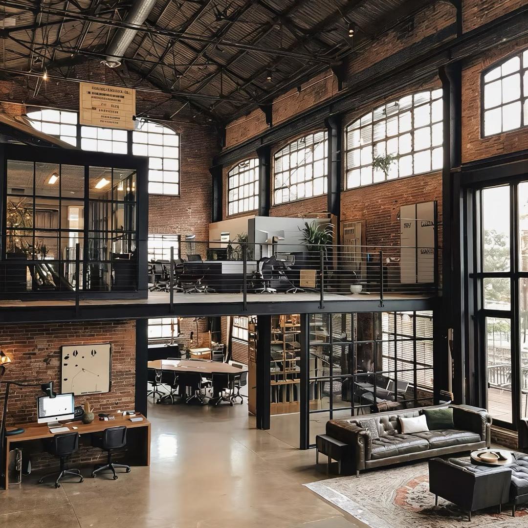 采光是厂房改造的重中之重。很多老厂房窗户小、位置偏,我们会根据户型做针对性优化:要么扩大原有窗户,改成整面的落地玻璃;要么在屋顶做采光顶,让自然光洒满整个空间。再搭配工业风的轨道灯、复古吊灯,白天自然光充足,晚上氛围感拉满,不管是日常办公还是客户来访,都超有面子,企业形象直接升级。